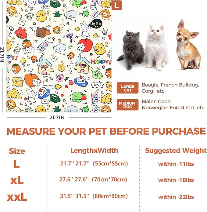 - Perfect Fit for Every Cat: Perfect Fit for Every Cat: Choose between three sizes: 21.7" x 21.7" (55cm) for cats up to 11 lbs, 27.6" x 27.6" (70cm) for cats up to 18 lbs, or 31.5" x 31.5" (80cm) for larger cats up to 22 lbs. This cat grooming wrap ensures a snug, secure fit for all breeds, providing full coverage and comfort during grooming, nail trimming, or vet visits.