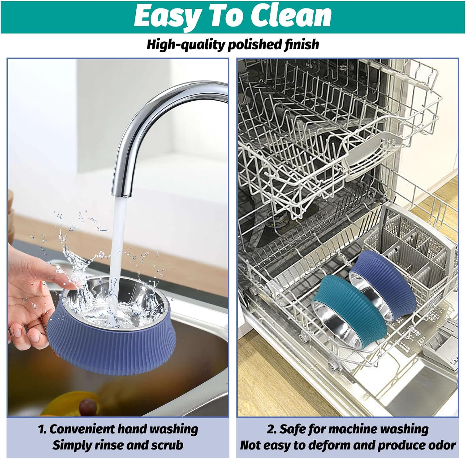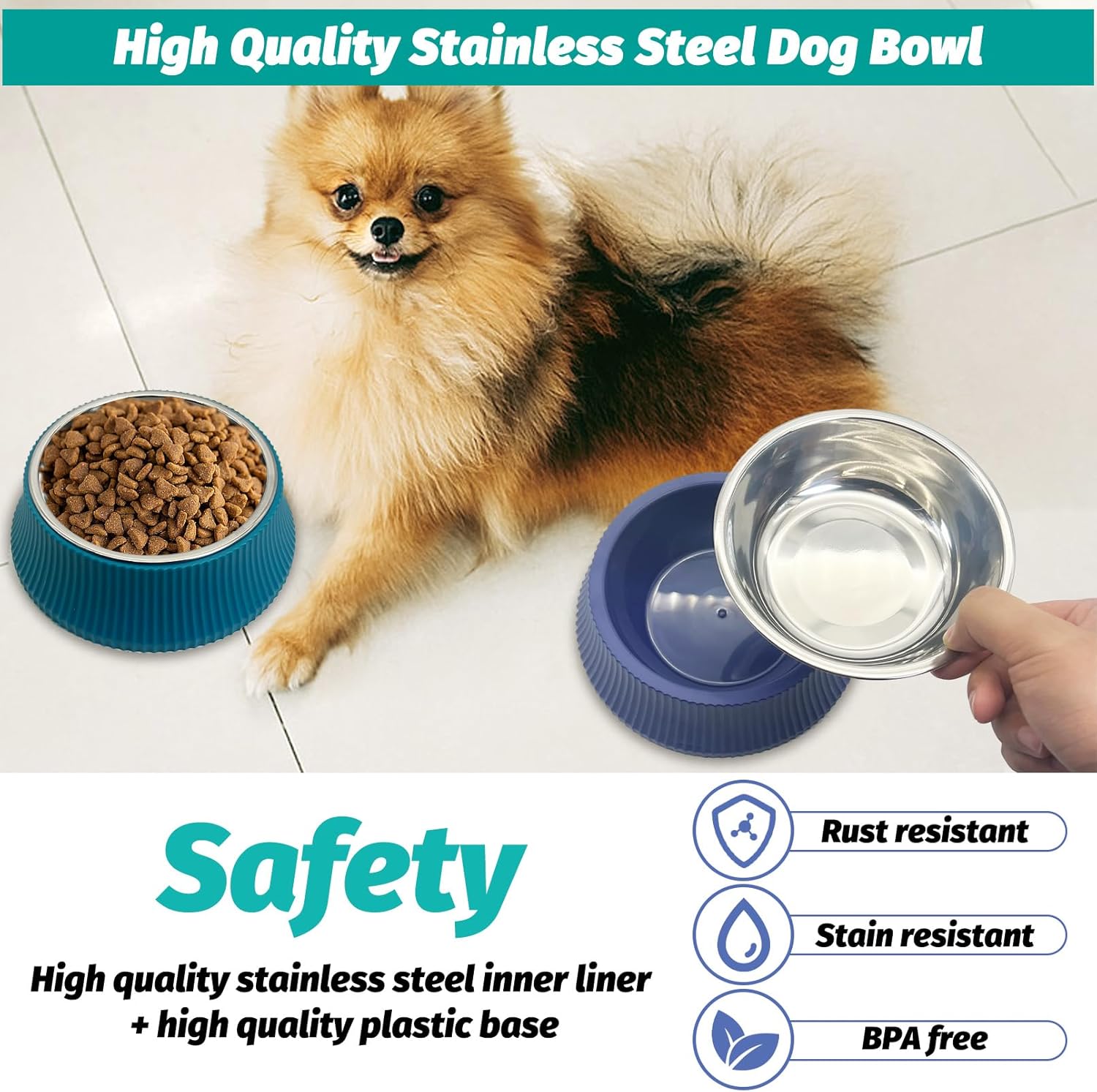 - High-quality Materials: Stainless steel dog bowls set consists of two bowls.Metal dog bowl consists of high-quality stainless steel inner liner and high-quality plastic shell, sturdy and durable, not easy to fade. The mouth of the bowl is raised so that food is not easy to spill