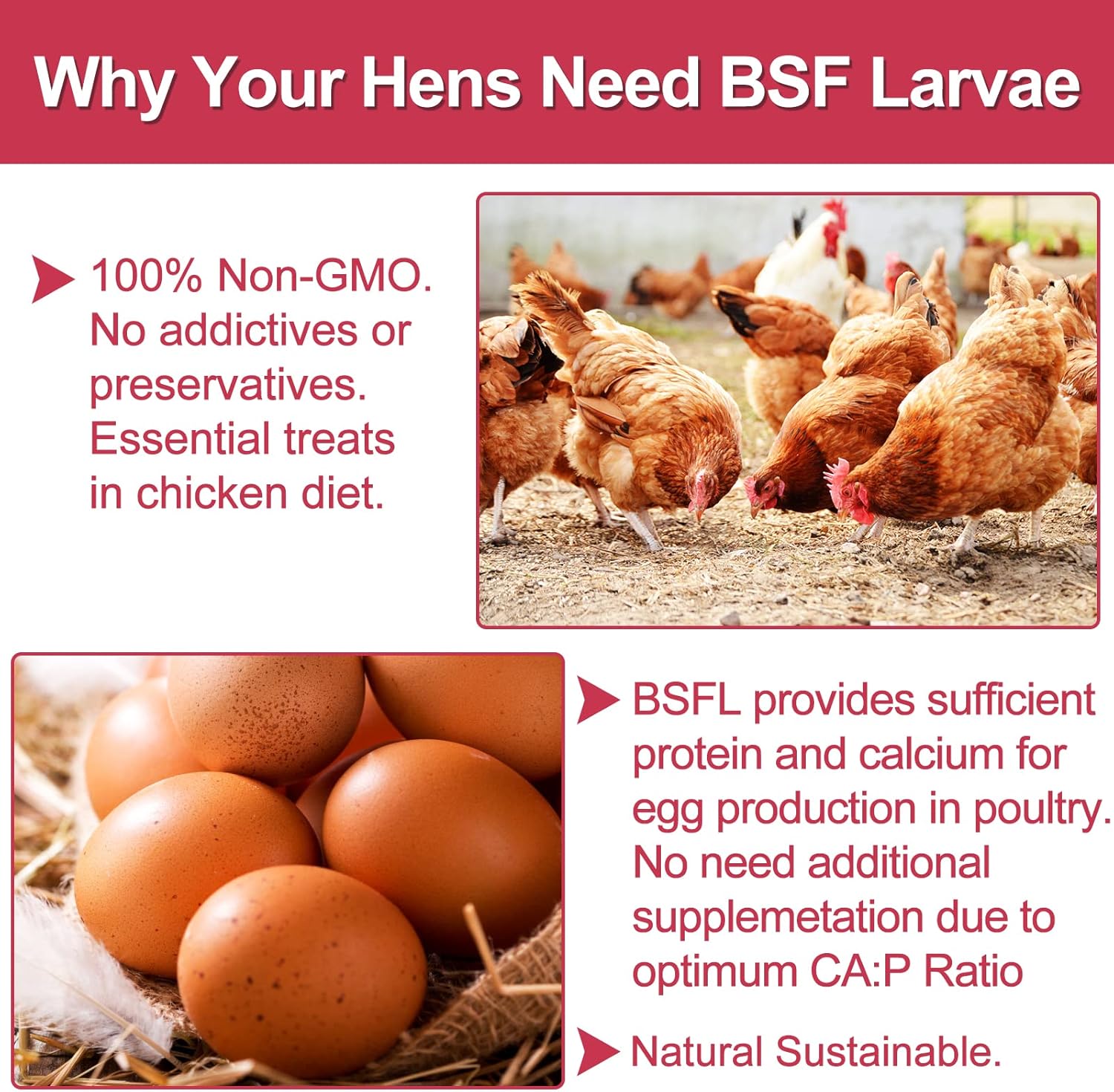 - HIGH QUALITY LARVAE: 10LB Black fly larvae for chickens high-quality larvae are hand-selected and the rapid drying process ensures a crispy taste and rich flavor, Increase appetite. Your chickens, turkeys, wild birds, and ducks will eagerly enjoy