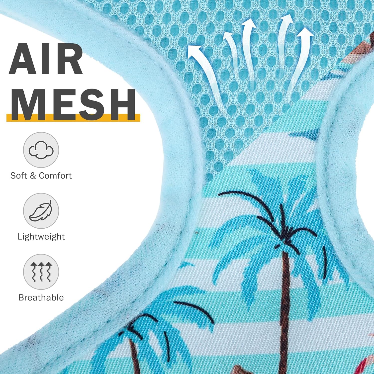 SCENEREAL Small Dog Harness and Leash Collar Set - No Pull Dog Harness for Small & Medium Sized Dogs - Soft Mesh Vest for Puppies, Chihuahua, Yorkie, Spring Summer Hiking Walking, Coconut Tree XS