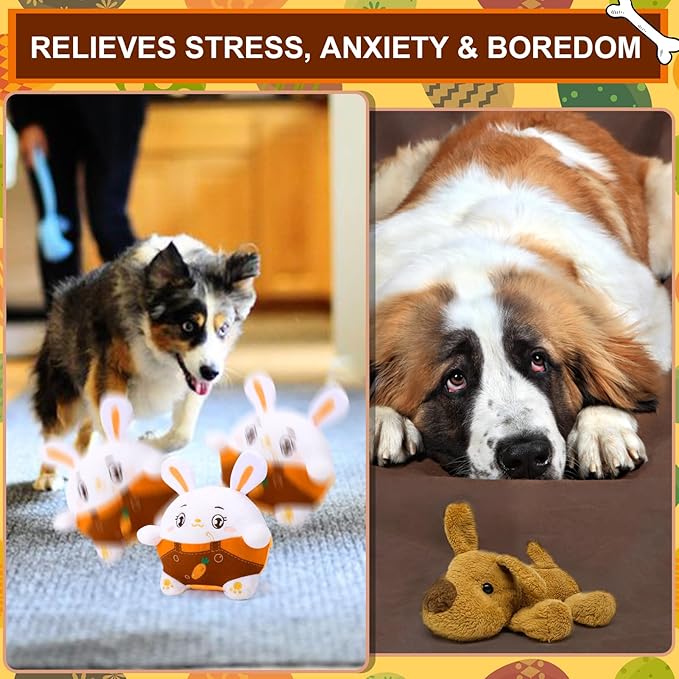- 【Relieve Stress And Anxiety】: Dogs can also feel stress and anxiety, especially when they are bored for long periods of time. This dog easter toys for small/medium/large dogs provides stimulation and entertainment so that your dog can focus and burn off excess energy, thus relieving stress and anxiety and making them calmer and more relaxed