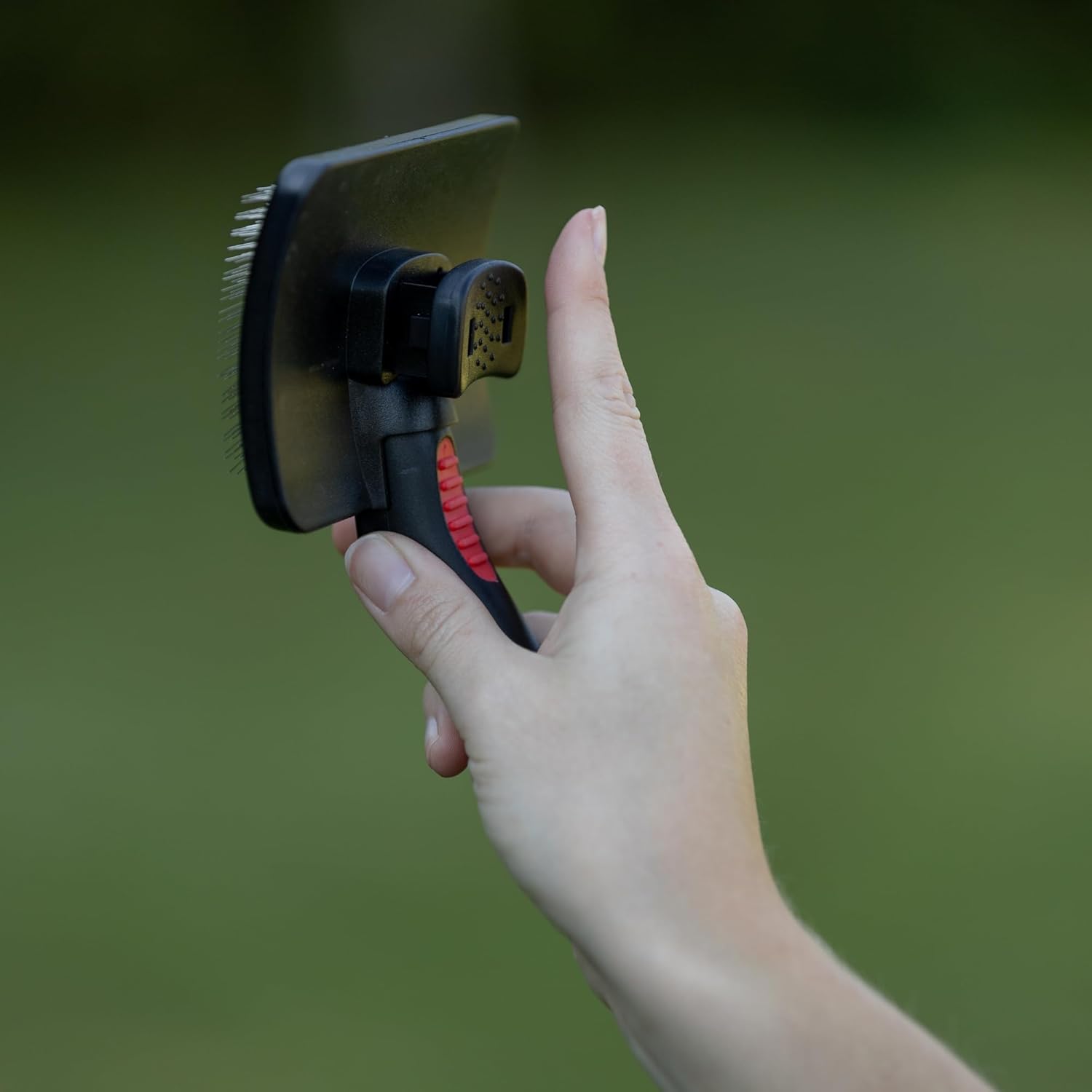 - EFFORTLESS GROOMING WITH SELF CLEANING SYSTEM - The Jeffers Self-Cleaning Slicker Brush features a convenient button that quickly releases collected hair, making grooming faster and easier for both pets and owners.