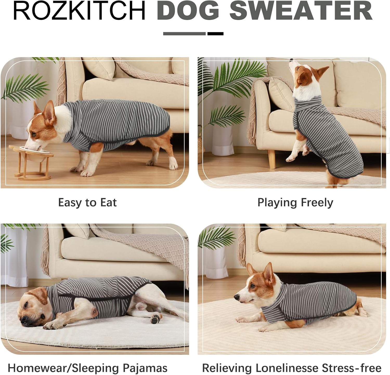 ROZKITCH Dog Winter Coat Soft Pullover Pajamas, Pet Windproof Warm Cold Weather Jacket Vest Cozy Jumpsuit Apparel Outfit Clothes for Walking Hiking Travel Sleep Stripe 3XL