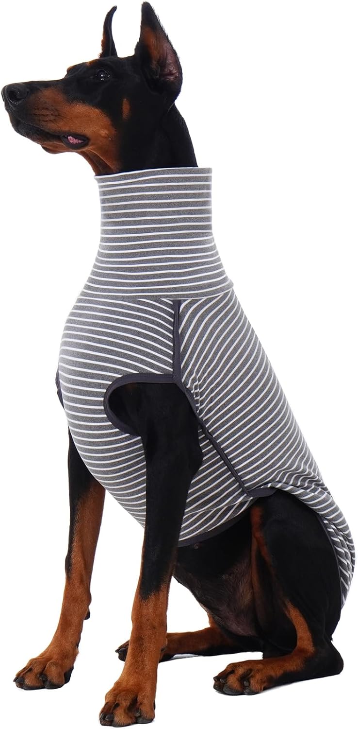 ROZKITCH Dog Winter Coat Soft Pullover Pajamas, Pet Windproof Warm Cold Weather Jacket Vest Cozy Jumpsuit Apparel Outfit Clothes for Walking Hiking Travel Sleep Stripe 2XL