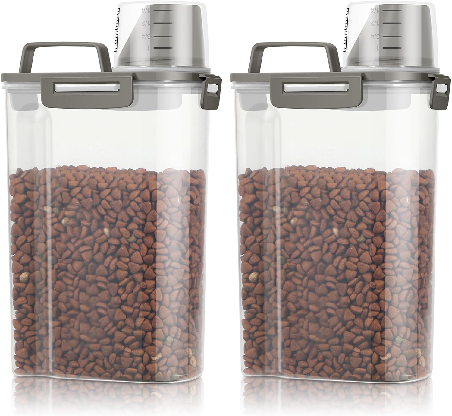 TBMax Small Dog Cat Food Storage Containers 2 Pack, Travel-Friendly Pet Food Container with Spout & Measuring Cup, Kid-Friendly Pet Feeding Dispenser, Portable Dog Treat Bird Seed Container -Grey