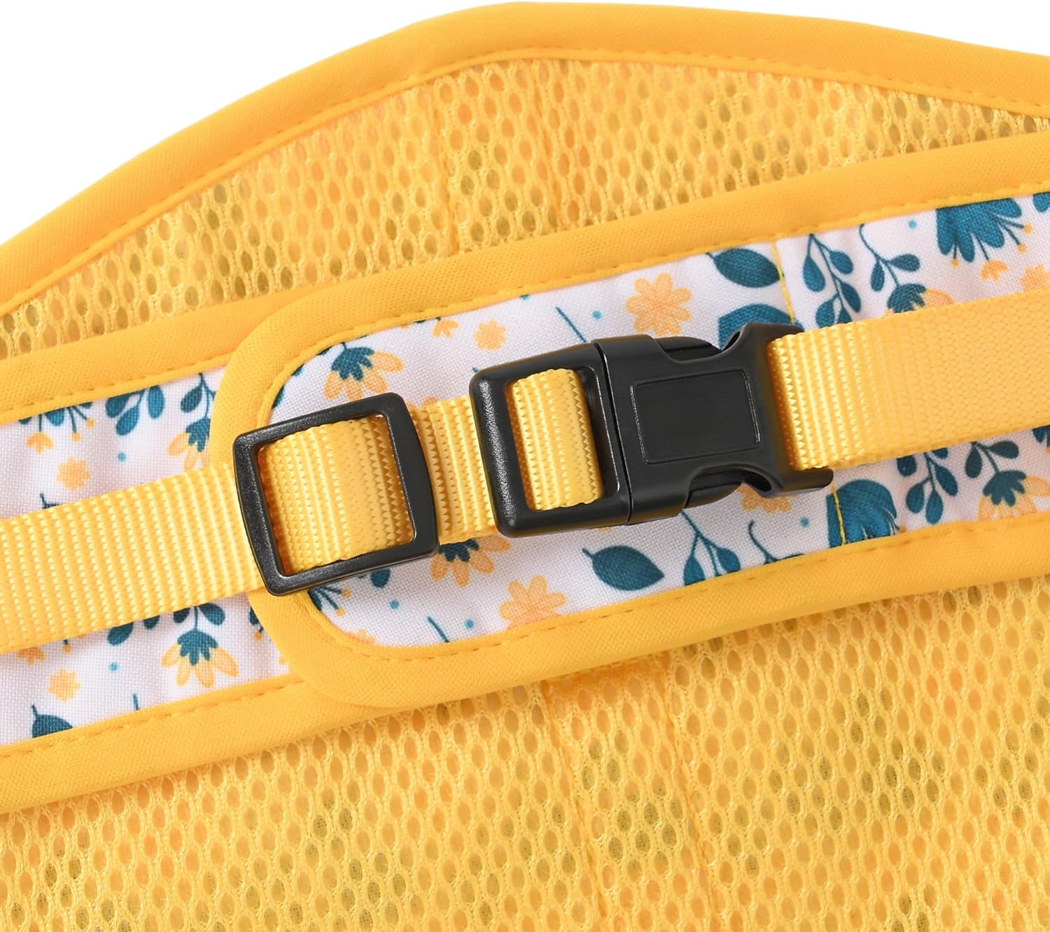 Mile High Life Dog Harness, Air Mesh Floral Vest Harness for 20 lbs Small Dogs & Cats, Easy Get on Adjustable Easy Closures Both Neck and Chest(Yellow Flower, M Chest 18"-20")