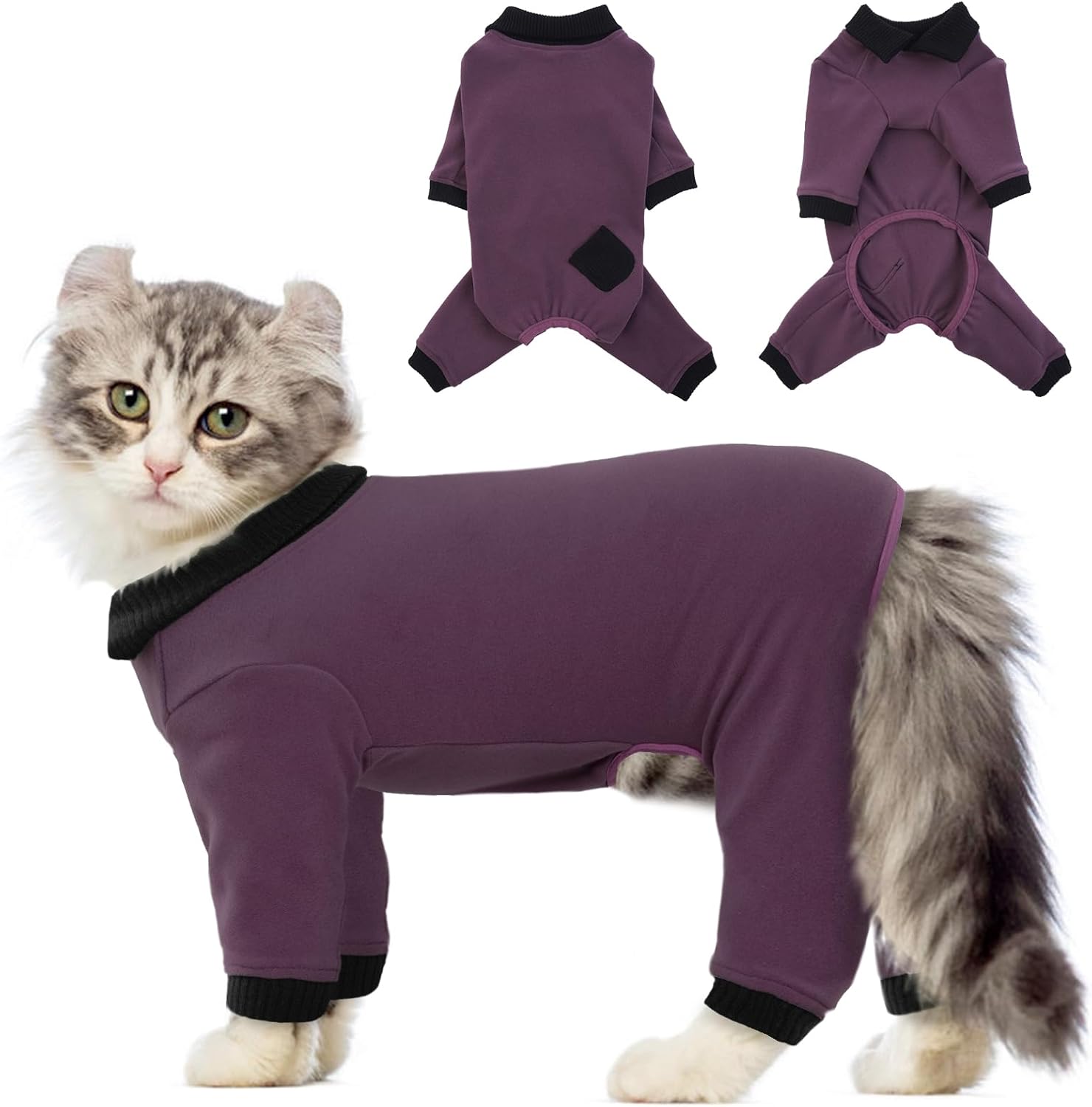 - Unique Design Cat Outfit- Our cat shirt is threaded in the cuffs, collar, and cuffs of this kitten suit, which can better fit the pet's body and prevent hair from falling off. Wearing cat healing onesie will greatly alleviate anxiety and cat onesie to prevent licking
