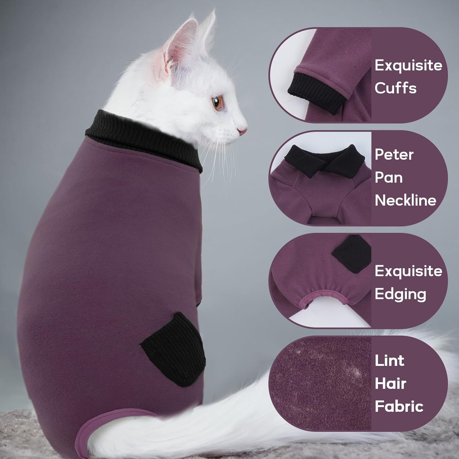 - Unique Design Cat Outfit- Our cat shirt is threaded in the cuffs, collar, and cuffs of this kitten suit, which can better fit the pet's body and prevent hair from falling off. Wearing cat healing onesie will greatly alleviate anxiety and cat onesie to prevent licking