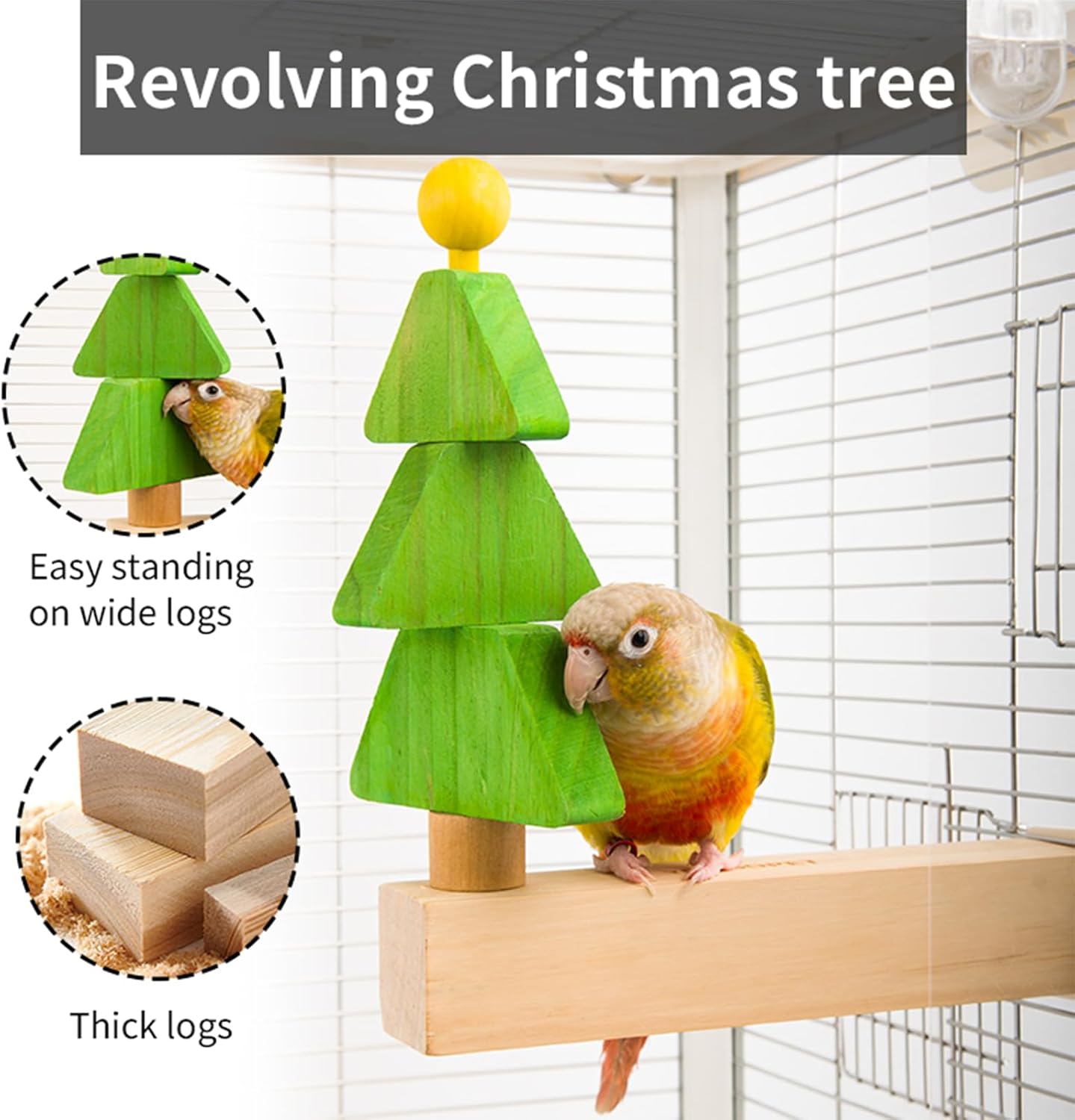Bird toys & Bird Perch, Bird Wooden Block Chewing Toy Parrot Foraging & Puzzle Toys Bird Cage Accessories for Conures Parakeets Cockatiels Lovebirds African Grey Macaws (Revolving Christmas Tree)