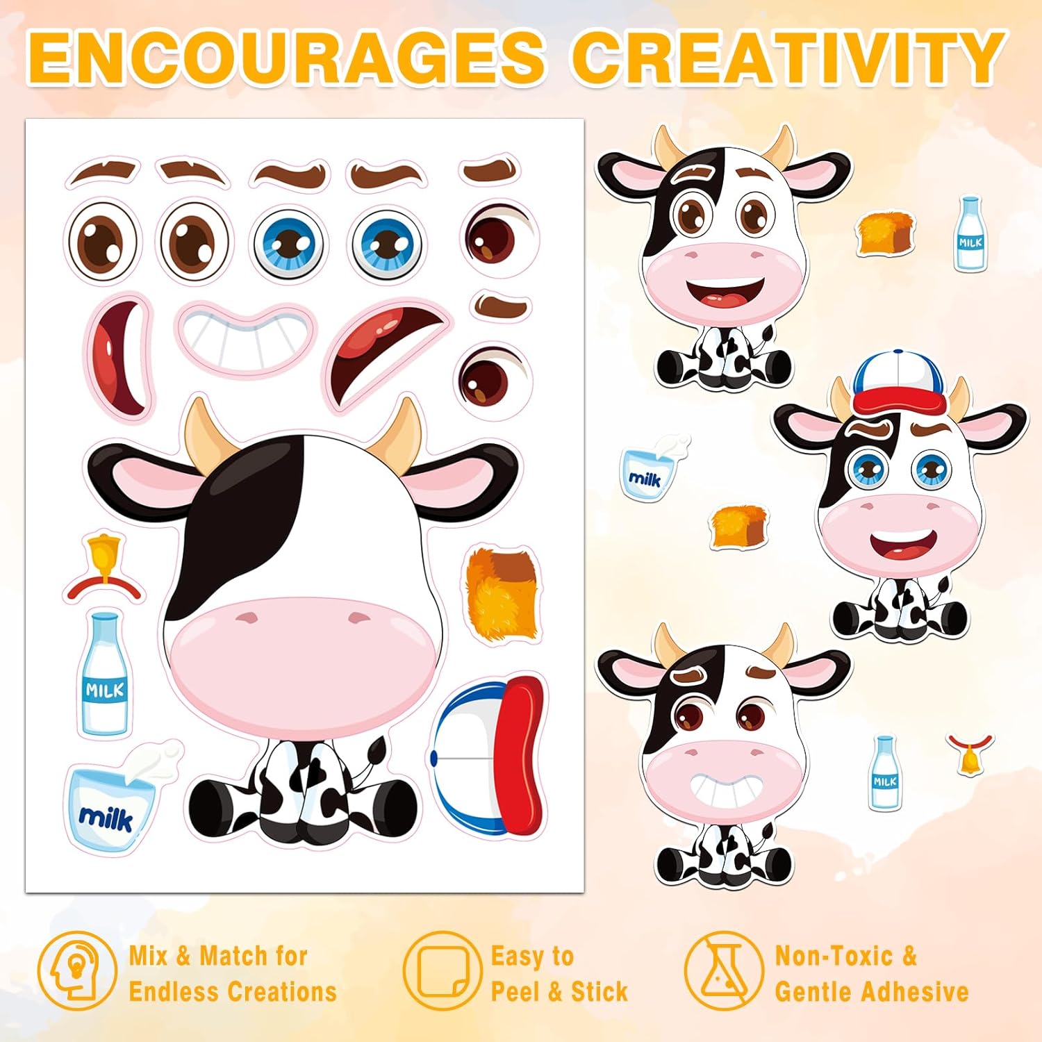 Aowplc 48 Pcs Make-a-Face Sticker Sheets for Kids 12 Animal Designs for Party Favors Crafts Activities & Goodie Bag Stuffers