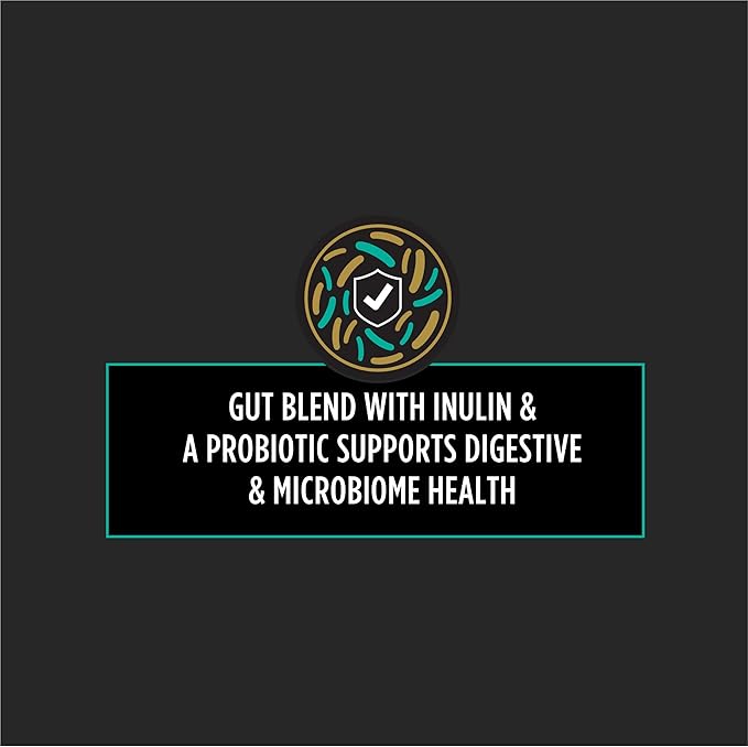 - Gut blend with a prebiotic fiber and probiotics for cats to support digestive and microbiome health while an antioxidant promotes a strong immune system