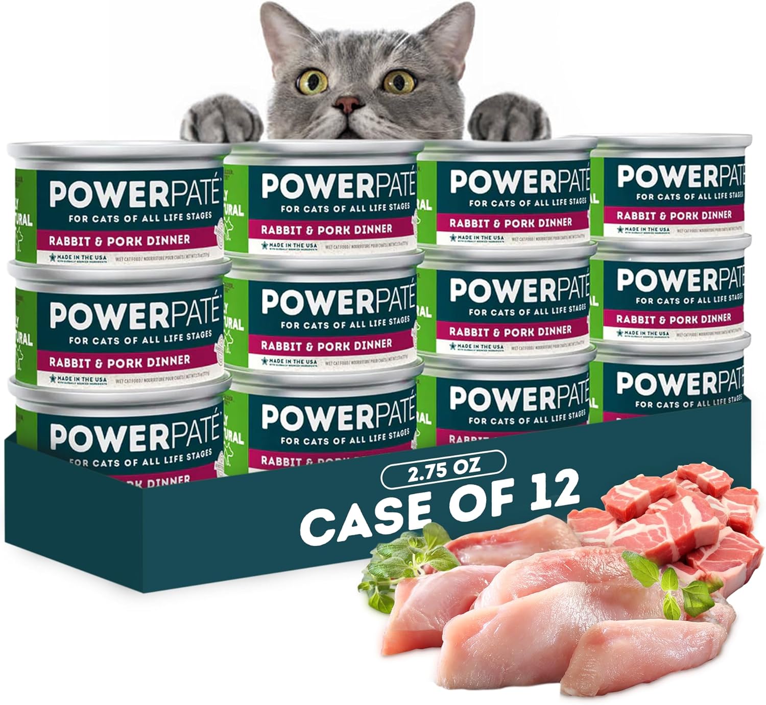 Only Natural Pet PowerPate Grain-Free Rabbit & Pork Wet Cat Food - High Protein, with Hydrating Broth - Healthy Balanced Nutrition for Kittens & Cats of All Life Stages, 2.75 oz Cans, Case of 12 (R)