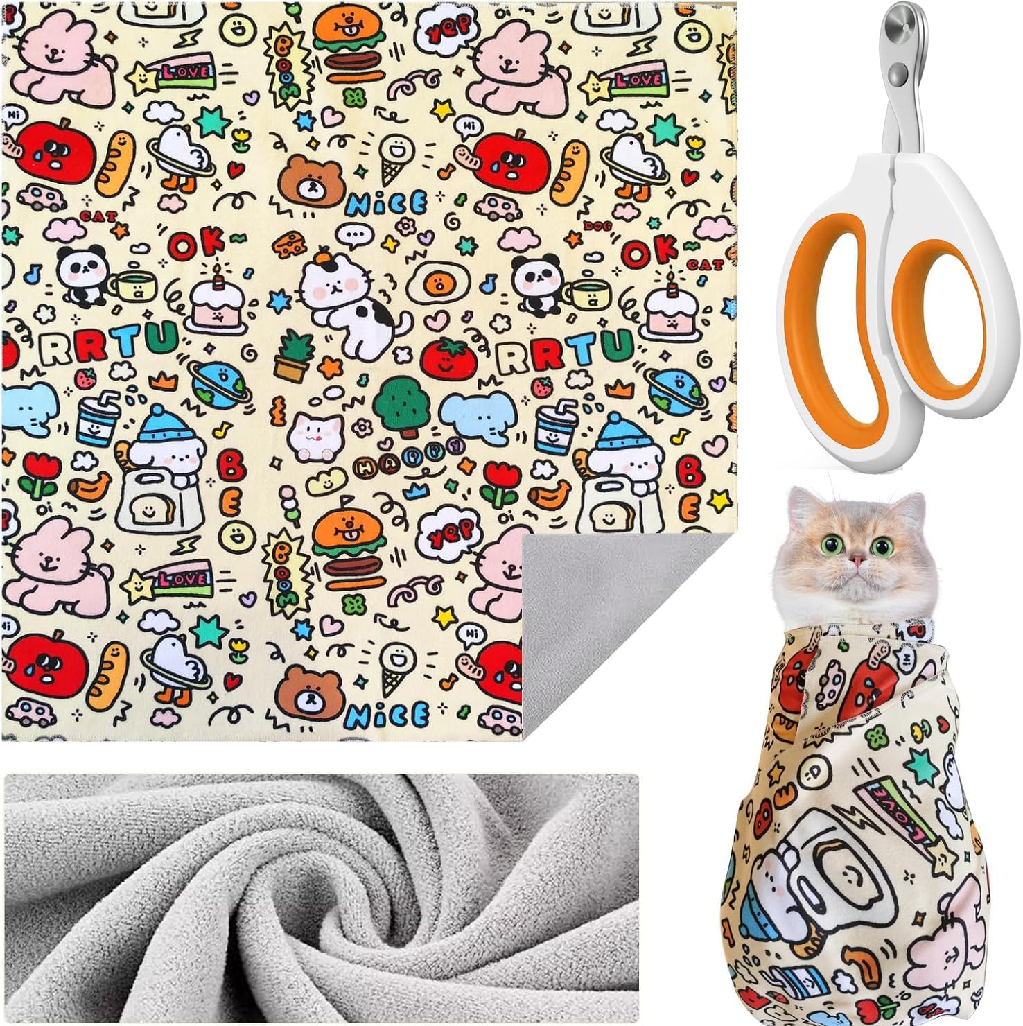 - Cat Wrap for Grooming: Our cat grooming wrap is designed to securely hold your cat for nail clipping and other grooming tasks. It simply wraps your cat to effectively prevent them from escaping and scratching, allow you to enjoy an unprecedented convenient experience when cutting nails, grooming, or administering medication. Even pet beginners can easily handle the tricky tasks of cat care