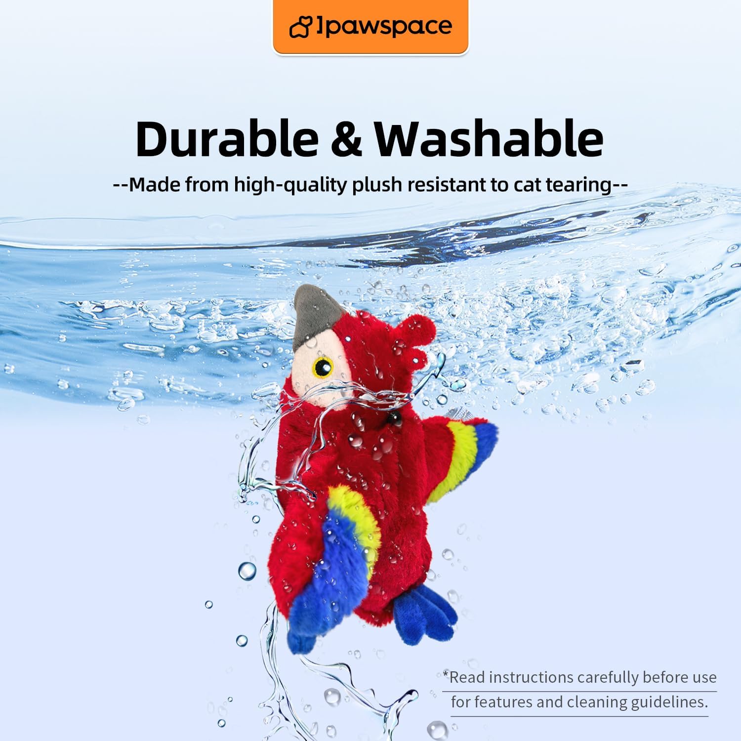 Interactive Flapping Bird Cat Toy with Catnip, Touch Activated Rechargeable, Musical Sound (can Turn Off), Satisfy Cat's Natural Huting Instinct, Soft Plush Washable Cover (Red)