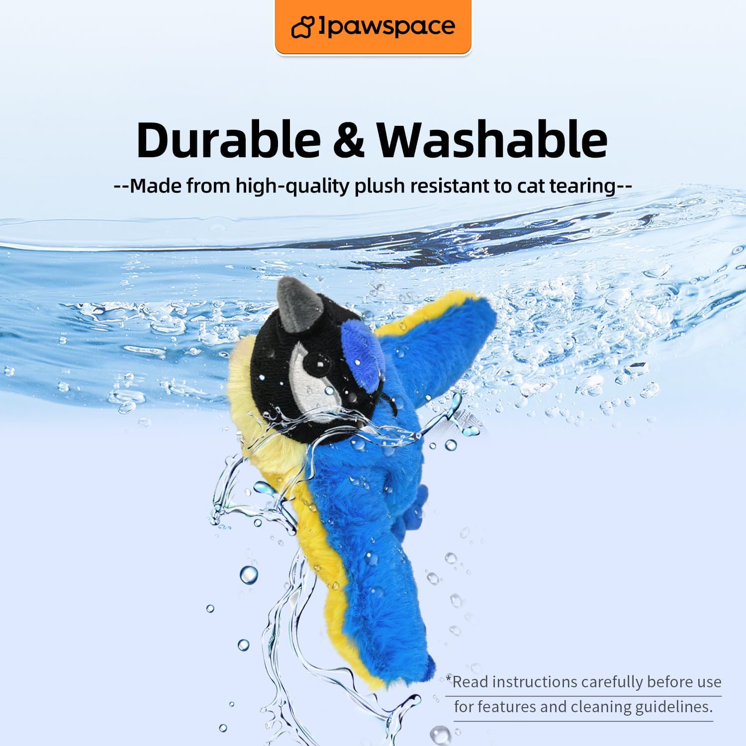 Interactive Flapping Bird Cat Toy with Catnip, Touch Activated Rechargeable, Musical Sound (can Turn Off), Satisfy Cat's Natural Huting Instinct, Soft Plush Washable Cover (Blue)