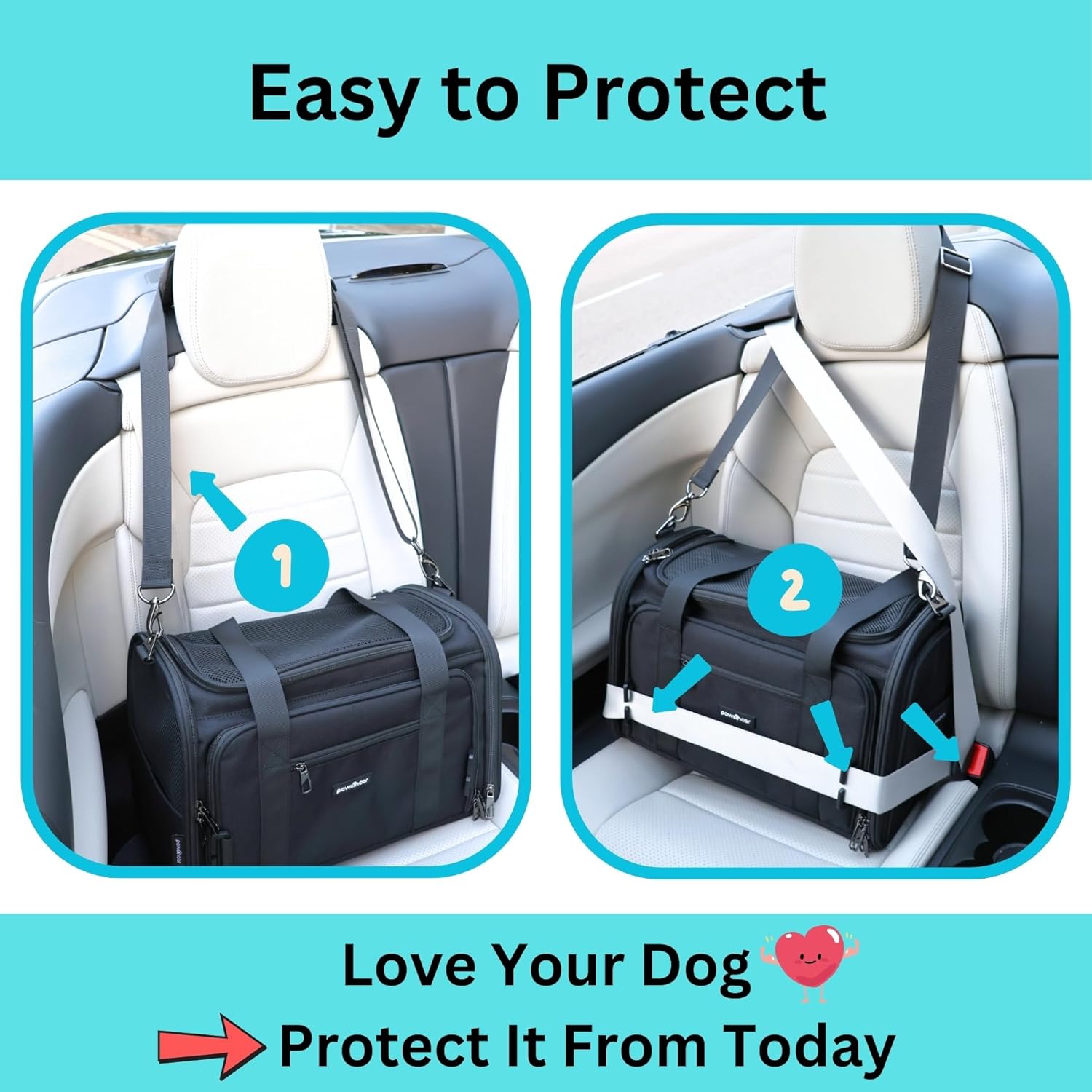 Crash-Tested Dog Carrier & Small Dog Car Seat (Test with FMVSS 213b - 5 Star Safety Rated by CPS) | Cat Carrier Soft - Expandable, Zipper Locks, Fan Pocket | Best for Safe Travel - For Pet Up to 13lbs