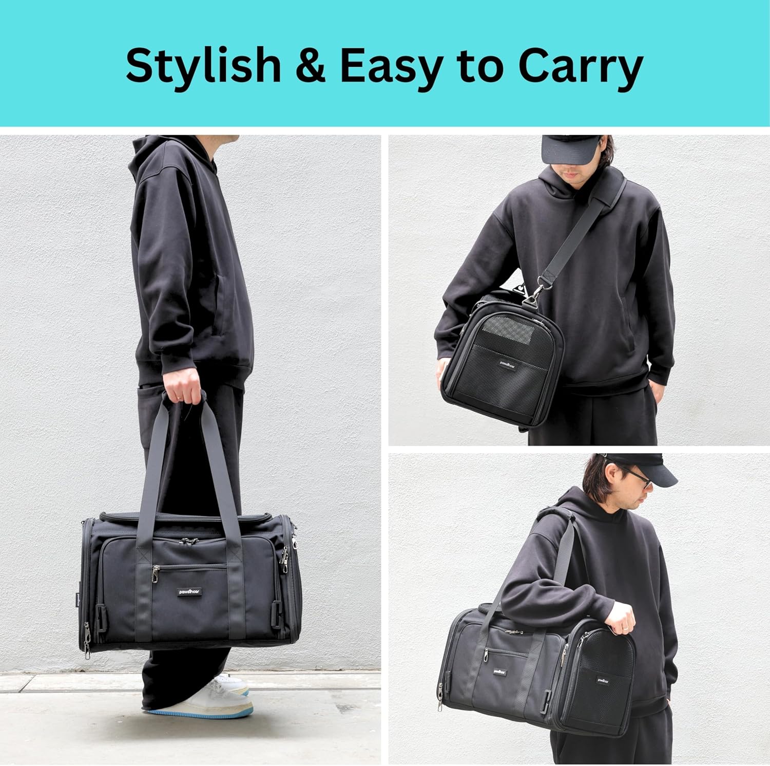 - Excellent Ventilation : This dog travel bag is designed with ample ventilation from 4 sides, making it super comfortable and safe for your pet to stay inside during long trips or flights. Its mesh area is one of the largest among other cat travel carrier. With the expandable feature, ventilation increases from 4 to all 5 sides. Additionally, we can add a portable fan in one of our mesh-designed pockets to enhance airflow and reduce heat in bad weather.
