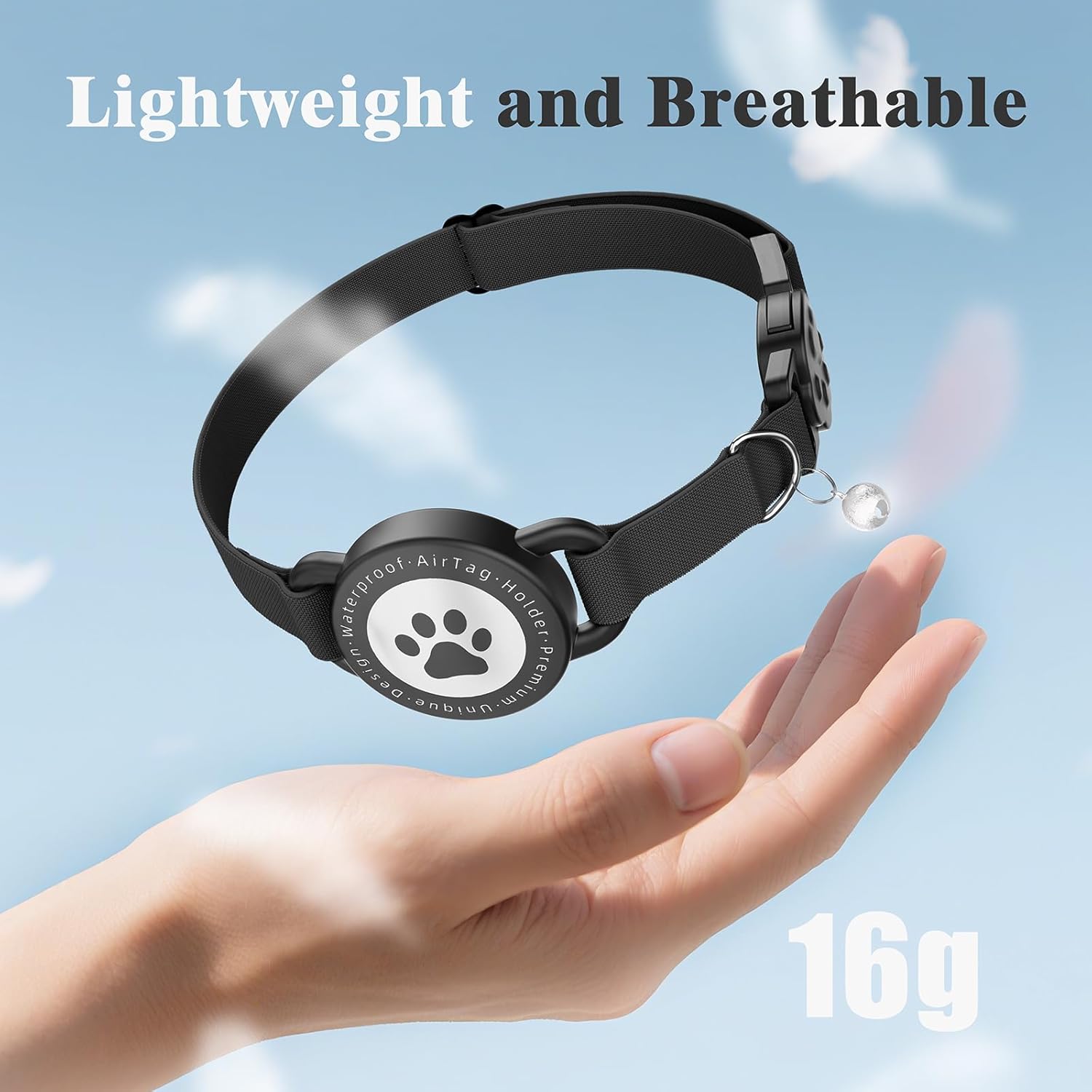 - ๐๐ข๐ ๐ก๐ญ๐ฐ๐๐ข๐ ๐ก๐ญ ๐๐ง๐ ๐๐จ๐ฆ๐๐จ๐ซ๐ญ๐๐๐ฅ๐: This featherlight 0.25 oz cat AirTag collar combines style and strength, Made with tough polyester webbing, provides maximum comfort for your cat, so they won't even notice they're wearing it.