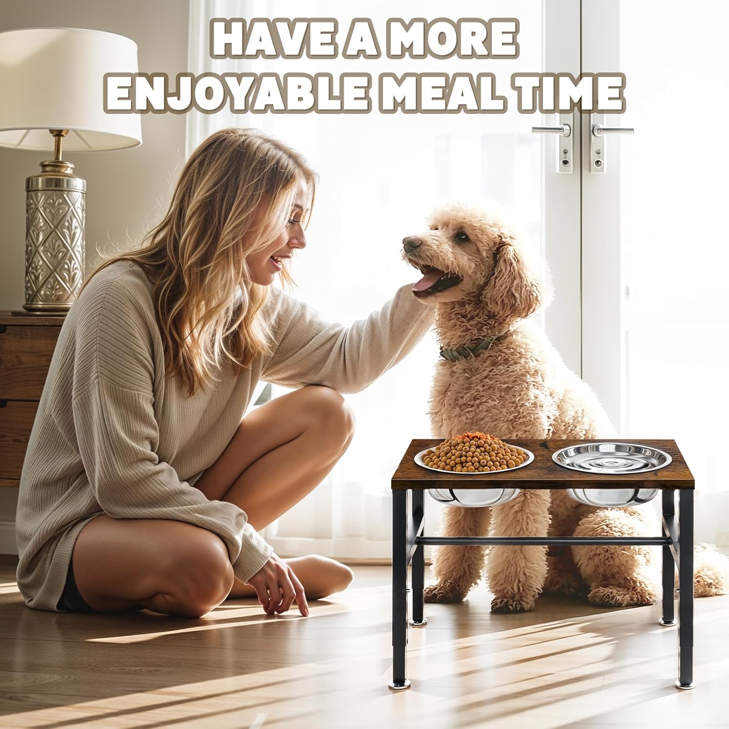 - Adjustable Height Dog Bowl Stand: Our elevated dog bowls can be adjusted to 3 different heights10.4", 12.4", 14.4", accompany then from puppy to full grown. The raised dog bowls make it easier and more comfortable for dogs to access food and water.