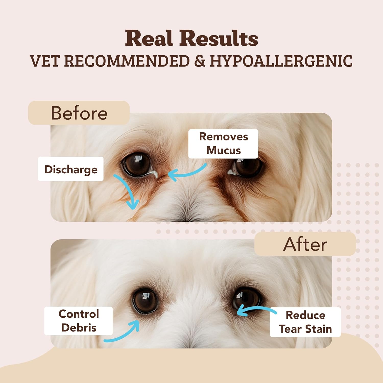 - PREVENTATIVE CARE ESSENTIAL: Integrating these eye wipes for dogs into your daily pet care ritual can help prevent eye infections and manage tear stains effectively. Our formula won't dry out your dog's delicate eye area, offering a comfortable, hydrating cleanse that keeps those puppy eyes bright and sparkling.