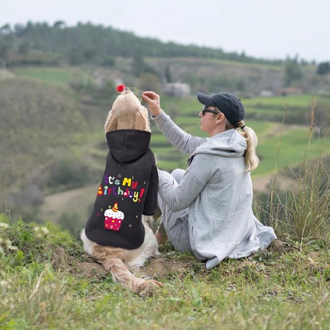 GreenJoy Dog Sweater Dog Hoodie Cold Weather Coat Hooded Sweatshirt for Puppies,Cats, Small Medium Large Dogs (Black(It's My Birthday), X-Large)
