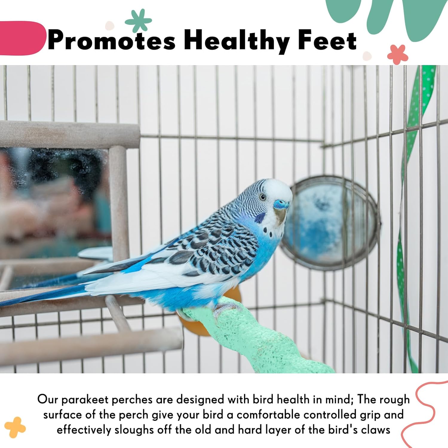 - Promotes Healthy Feet: our parakeet perches are designed with bird health in mind; The rough surface of the perch give your bird a comfortable controlled grip and effectively sloughs off the old and hard layer of the bird's claws