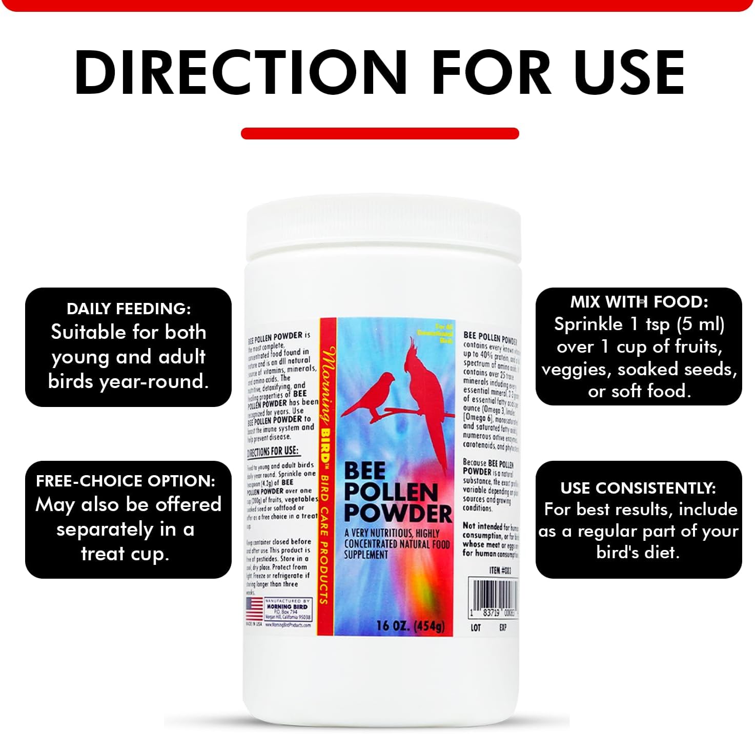 Morning Bird Bee Pollen Powder for Birds 16 Oz – Complete Nutrition with Protein, Amino Acids & Immune Support – Bird Vitamin & Mineral Supplement for Daily Health & Wellness