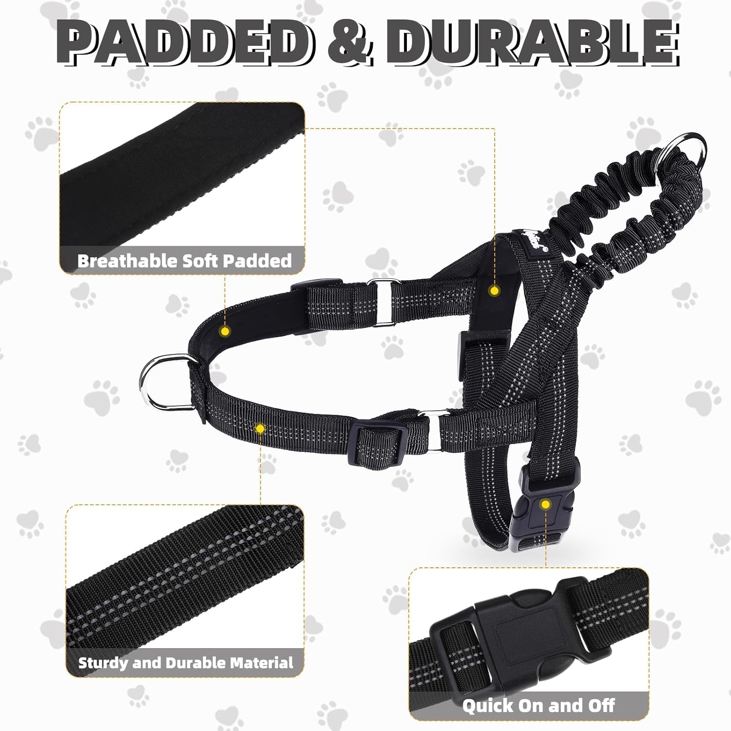 - BUNGEE HANDLE: This dog harness with a bungee handle instantly controls shock and absorbs tension with a shock-absorbing design. Easy to control, great for play or leash training. Keeps your pet safer during daily walks and training sessions