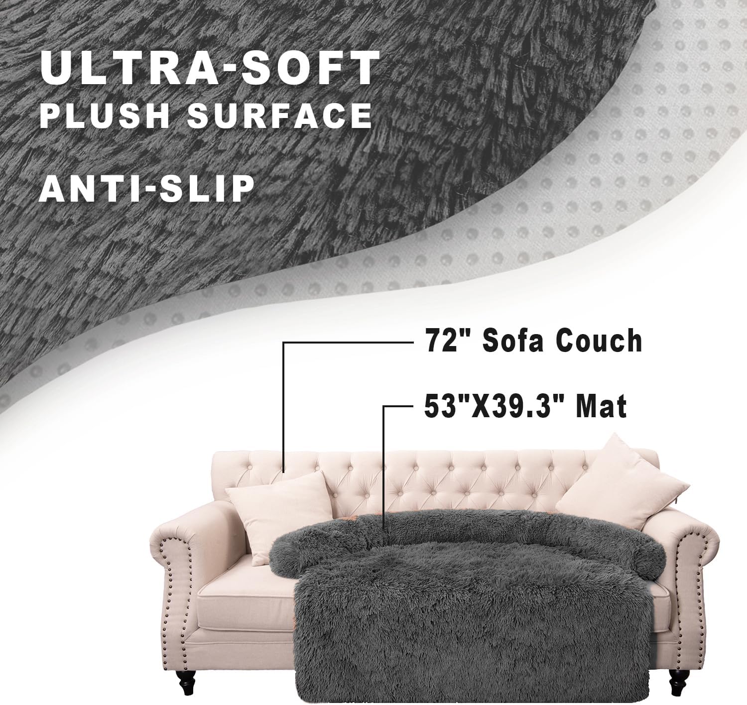 Calming Dogs/Cats Bed Mats, Dog Pad Washable Removable Couch Cover, Plush Long Fur Mat for Pets, Waterproof Lining, Perfect for Small, Medium and Large Dogs and Cats (Dark Gray, 53"x39")