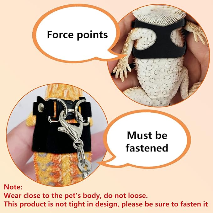 - Soft Leather Material: Bearded dragon harness is made of soft leather material, breathable and long lasting, providing your pet with comfort and freedom. The combination of nylon and leather material won't irritate your pet's skin and reduce the pulling on their neck, providing full protection for their chest and neck