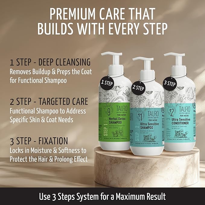 Tauro Pro Line Hypoallergenic Dog Shampoo Itchy Skin Relief, Moisturizing, Anti Itch Cat & Puppy Shampoo (Ultra Sensitive - 13.5 Fl Oz)