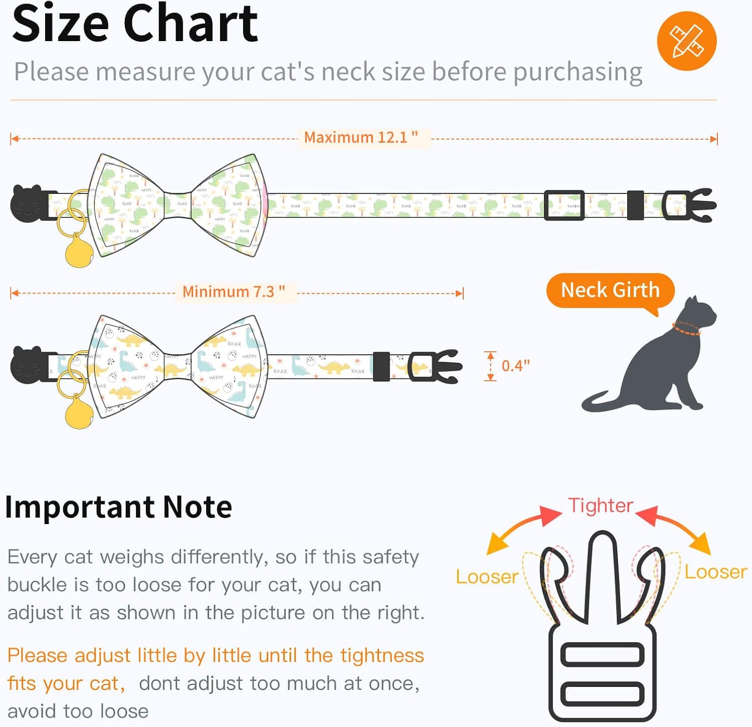 - 【Adjustable Size】: The cute cat collar has an adjustable length from 7-11 inches and a width of 3/8 inches, which can adapt to cats of different ages and breeds. Please refer to the product description picture to measure your pet's neck circumference before purchase to make sure the collar fits properly.