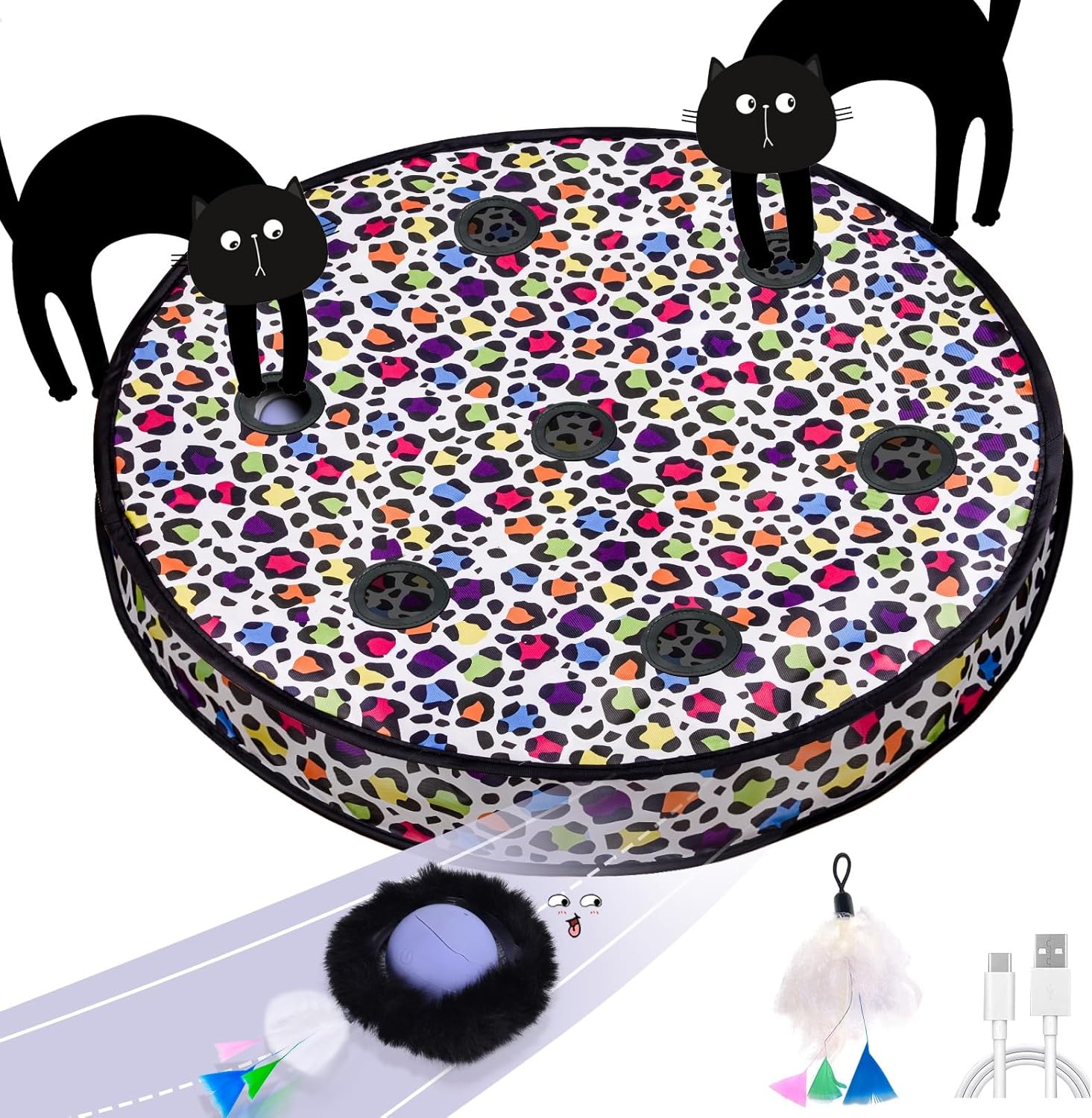 ORSDA Cat Toys, Interactive Activated Moving Ball in 7 Holes Mat, Automatic Fast Rolling Ball, Hide and Seek Toys for Indoor Cats, Exercise Kicker Mouse Catching Game