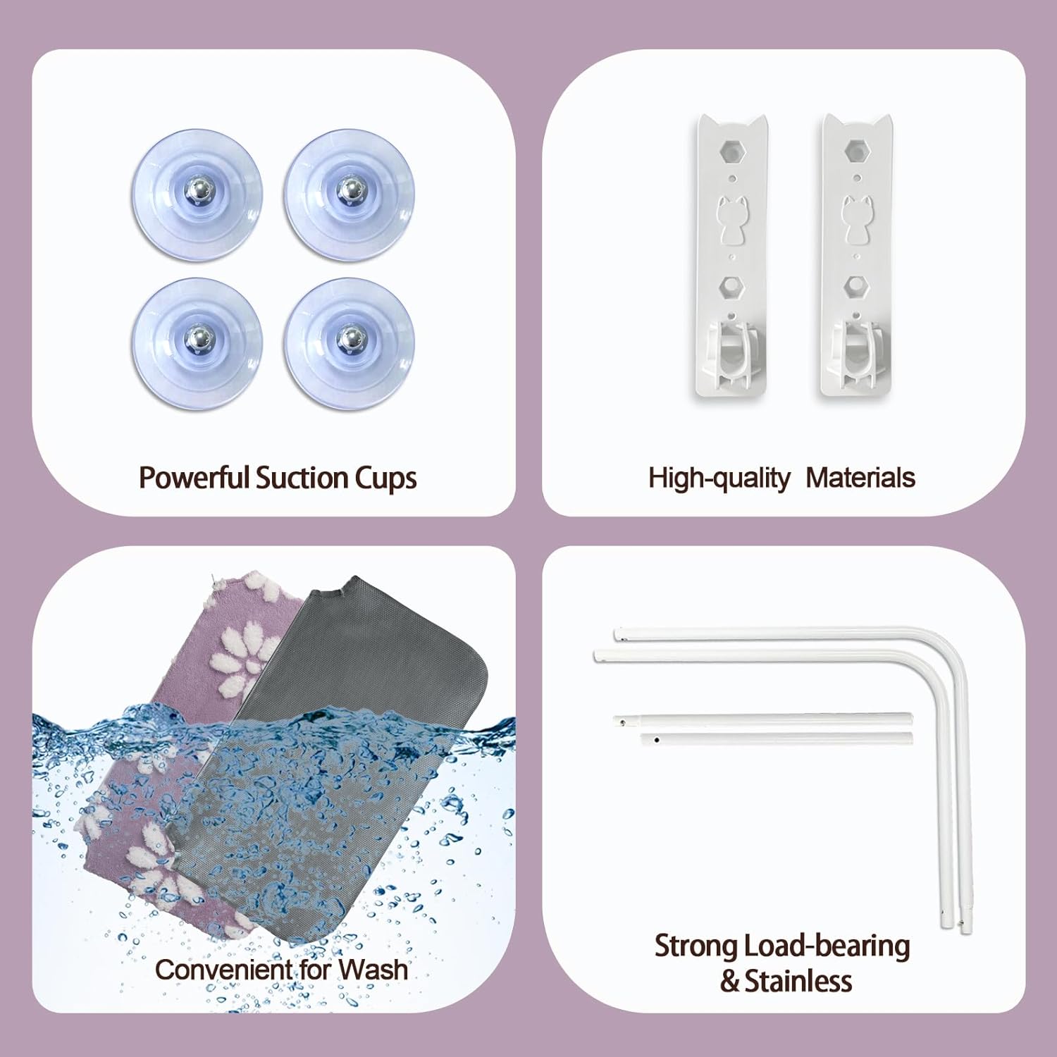 - Sturdy and Stable: The cat hammock is made of durable metal frame and cozy plush fabric, and can be fixed to the window glass through 4 suction cups. The large powerful suction cups make it sturdy and stable, with a load capacity of up to 40 pounds