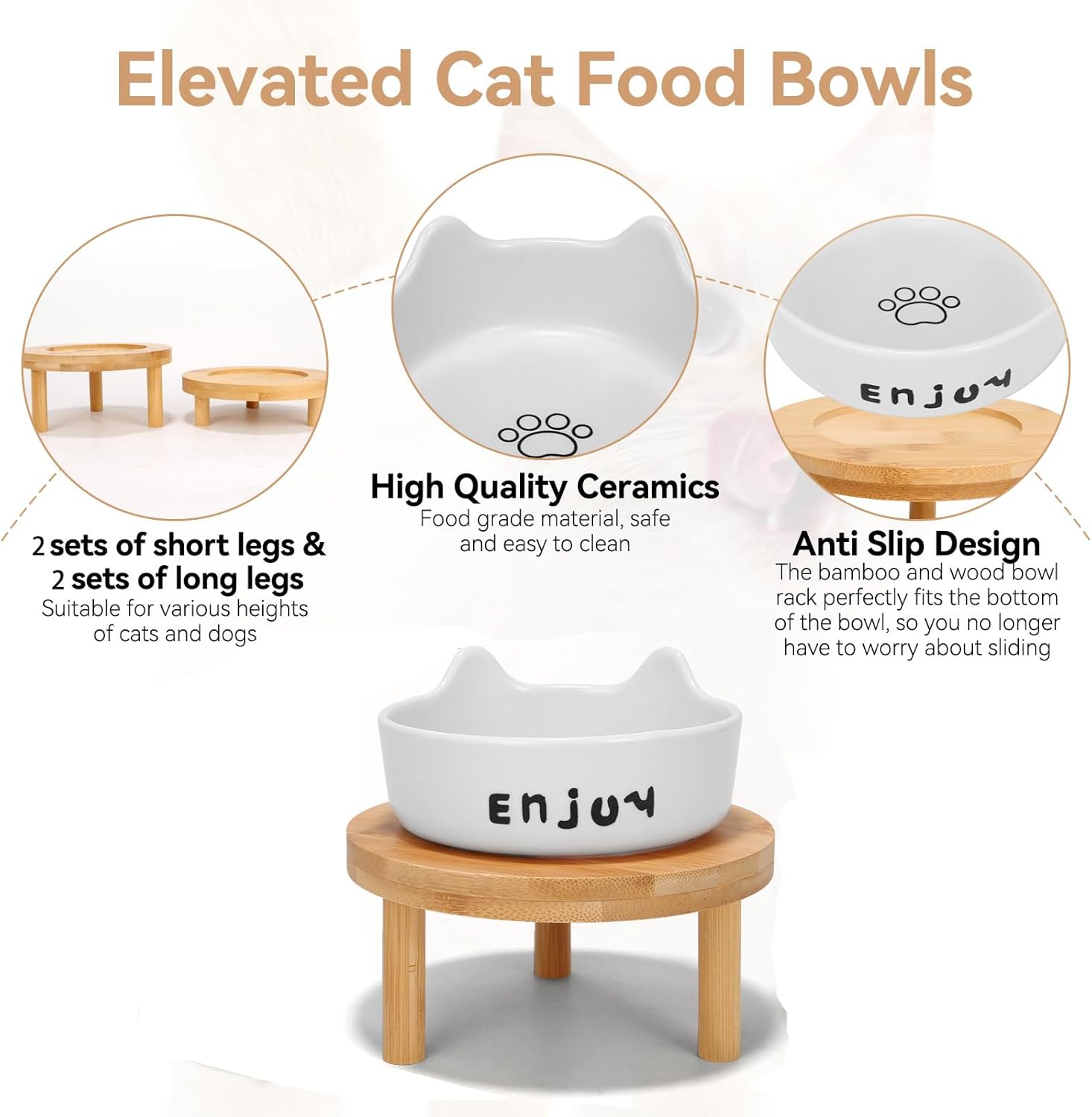 3PCS Elevated Cat Bowls,Wide Raised Ceramic Pet Dishes with Bamboo Stand, Whisker Friendly Pet Water or Food Plates Feeding Station for Indoor Small Dogs, Kitten (Black(2PCS))