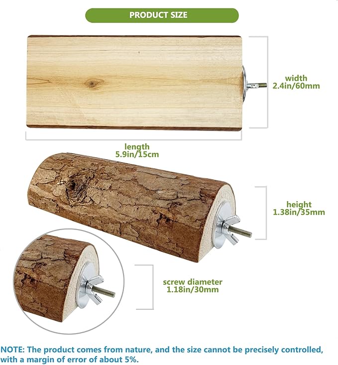 - Each bird perch is fully equipped with a metal wing nut and a built-in bolt. It is very easy to install in a cage.