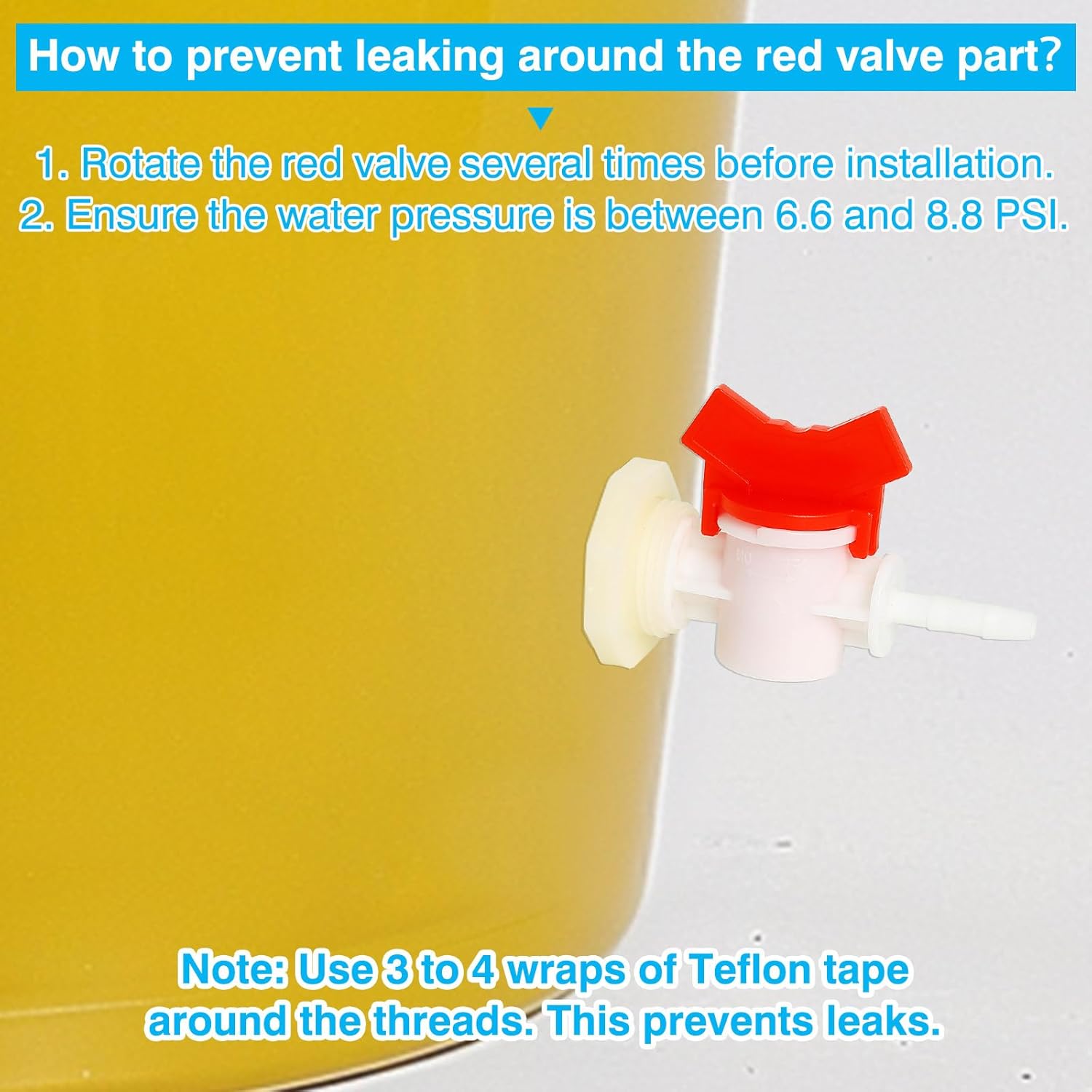 - Installation: The ABS Bulkhead Fitting is designed for a 1-1/8 inch hole saw, making it easy to install. Simply assemble the bulkhead fitting with the Barb Ball Valve and silicone sealing gasket for a watertight fit. For optimal performance, ensure the water pressure is between 6.6 and 8.8 PSI