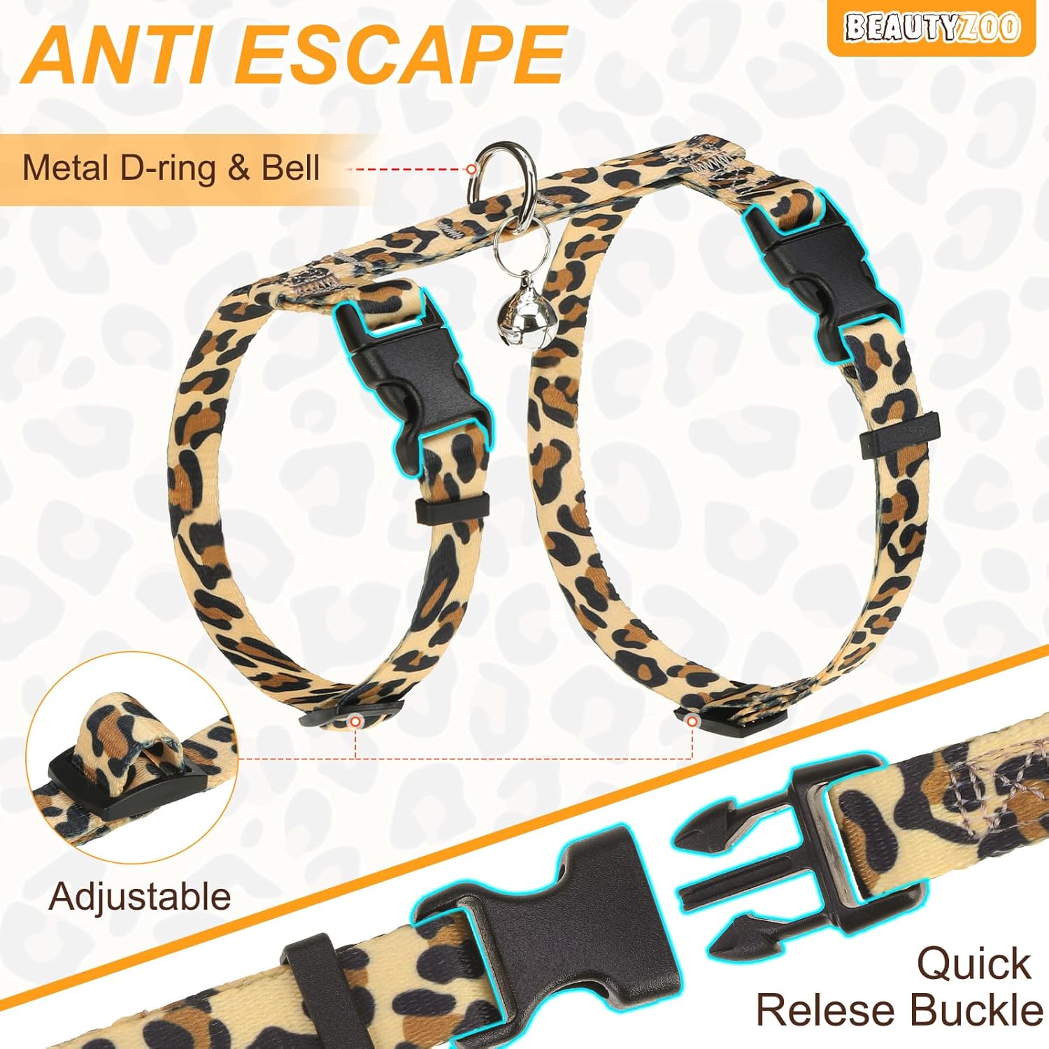 - [APPEARANCE]-The leopard print makes the cat harness escape proof look stylish yet practical. Bright colors also allow you to spot your cat in time to prevent it from getting lost while walking outdoors.