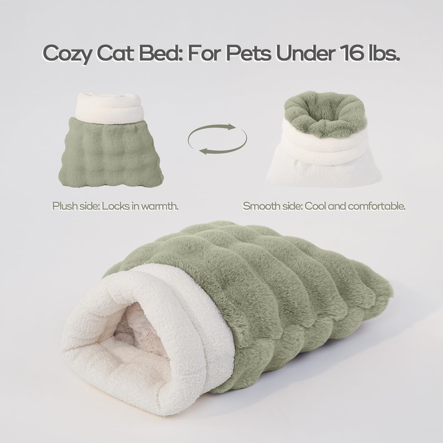 Cat Sleeping Bags for Indoor Cats Self Warming Cat Bed Fits up to 15 lbs Pets Soft Plush Warm Bed 360° Wrap Bag Washable Comfortable Pet Sleeping Bed 21" × 17" Green