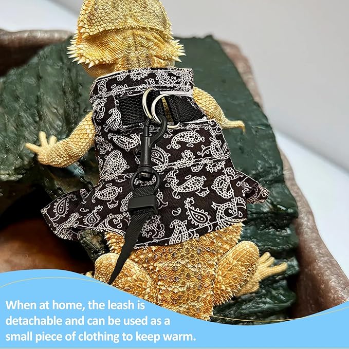 Lizard Harness Dress and Leash, Adjustable Hamster Ferret Harness and Leash Set, No-Pull Walking Vest for Lizard Small Animal Gecko Chameleon (Black S