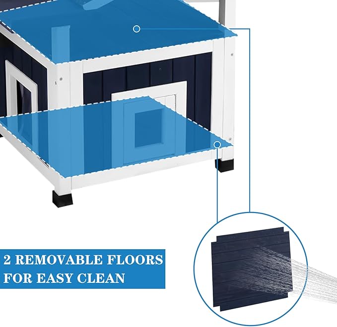 - Easy Clean: Our weatherproof cat shelter includes 2 removable floors for hassle-free cleaning - simply detach to sweep away debris or wipe surfaces without disassembling the entire structure