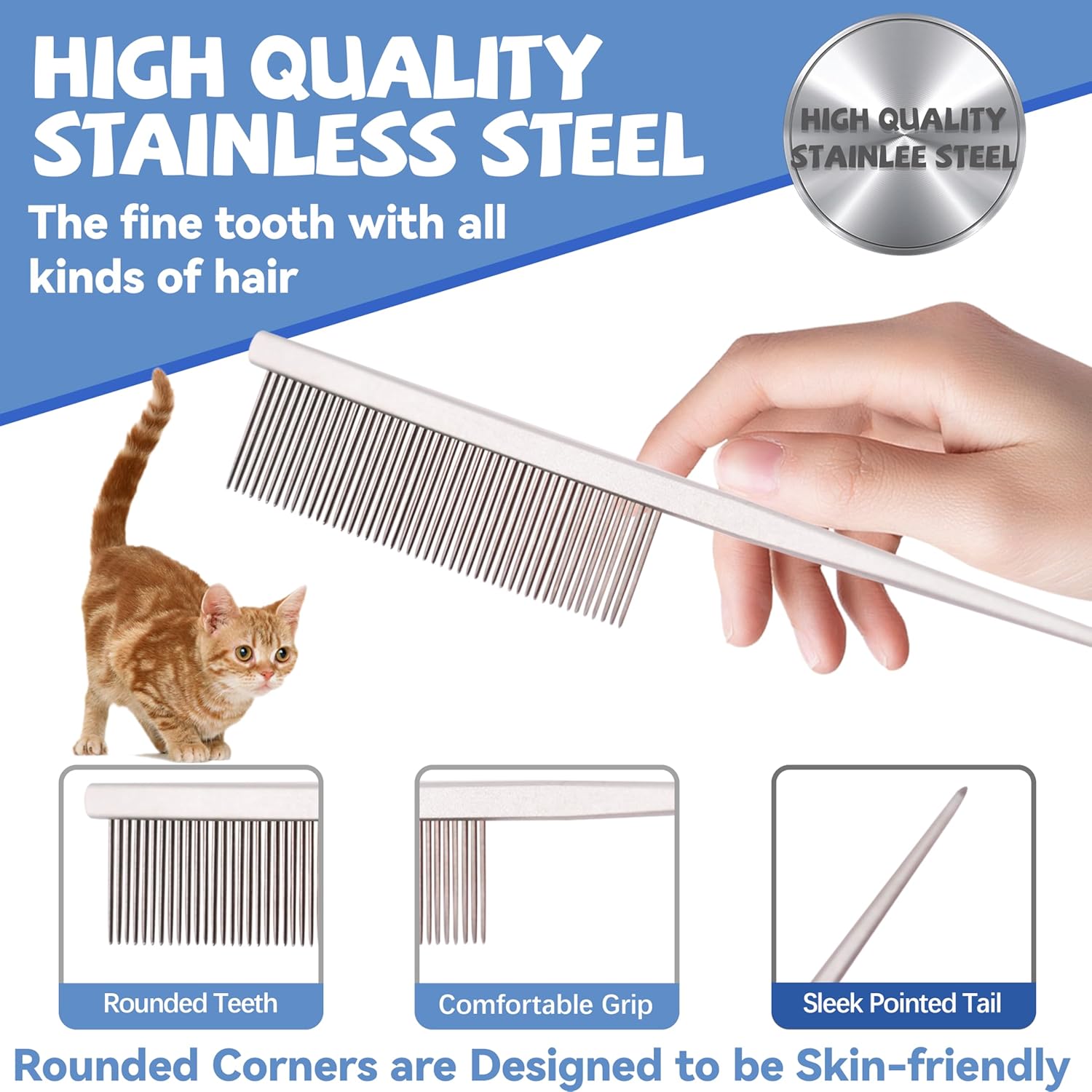 Grooming Pet Comb Rat Tail Dematting Cat and Dog Comb,Rounded Ends Design for Safe Tangle Removal, Hairstyling, Massage,Loose Hair Removal,Prevent Irritation,Fluffing Paws,Face,Tail,Remove Tear Stain