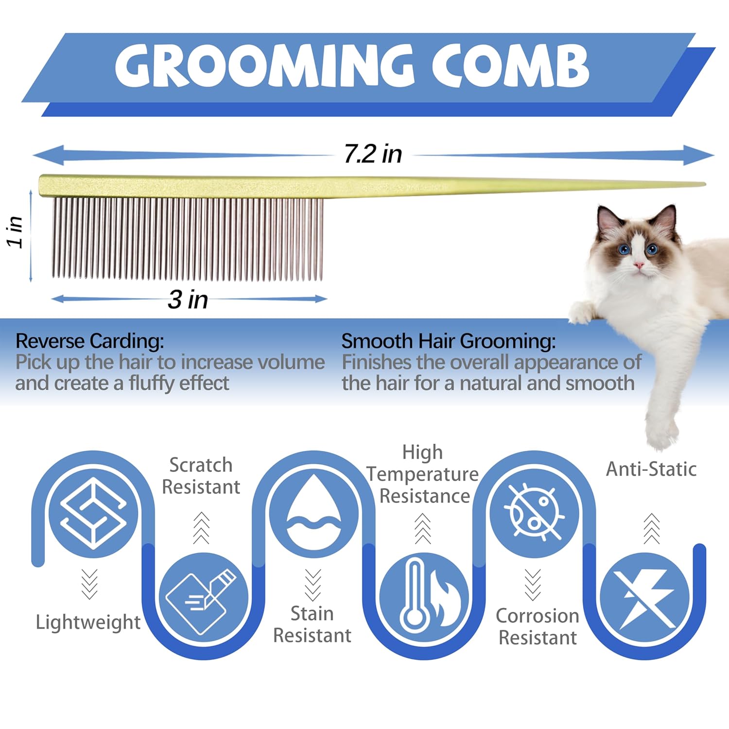 - [Safe & Comfortable Round-Head Design]:Featuring a smooth, burr-free round head, this comb is designed for precise touch-ups, gentle massages, and improved blood circulation—ensuring a safe grooming experience for your pet.