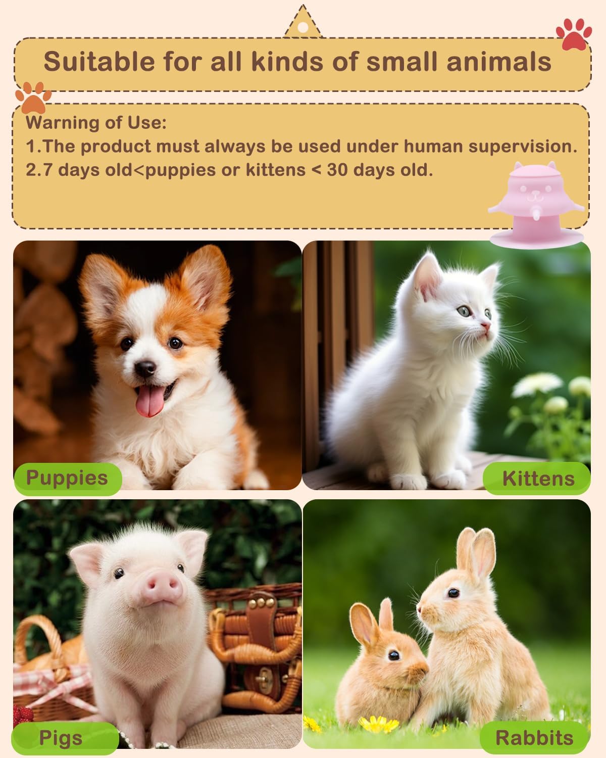 - Warning of Use - The product must always be used under human supervision. For puppies or kittens over 30 days old, avoid this feeder as their sharp teeth can damage soft nipples and pose a risk of ingestion. Patience is required for first use, as newborn pets need guidance for first-time use