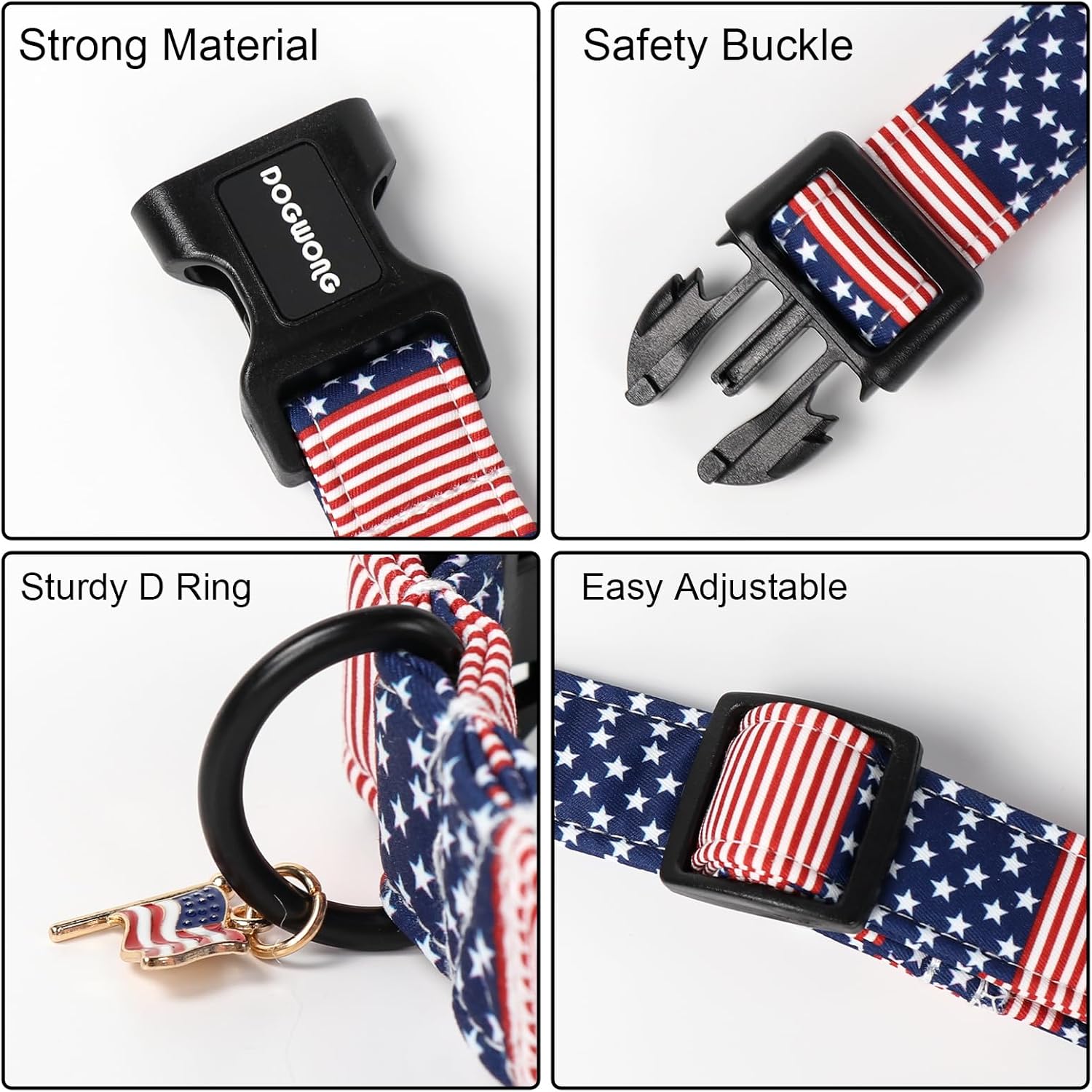 DOGWONG Patriotic Flag Dog Collar, 4th of July American Flag Dog Collars, Adjustable Cute Patriotic Pet Collars Fourth of July Design Dog Collar for Small Medium Large Dogs