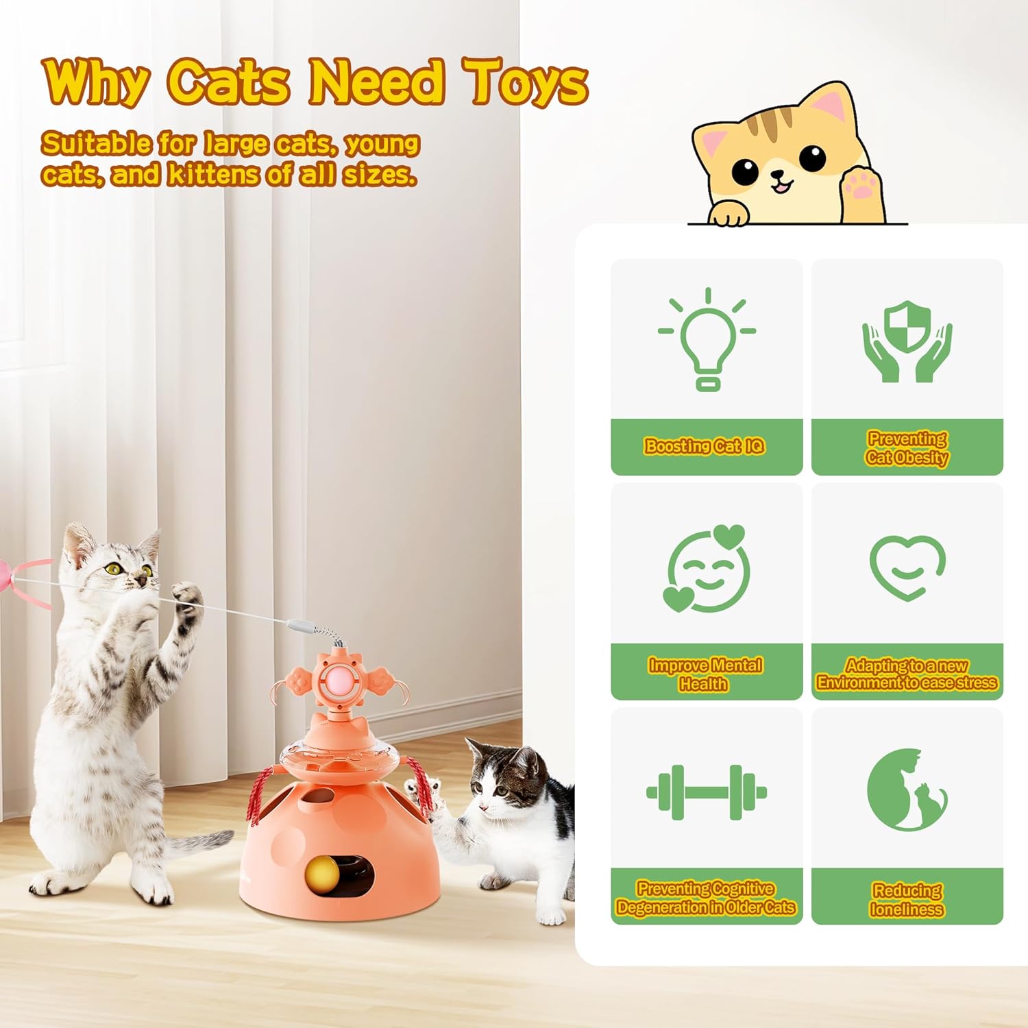 - Multi-functional Interactive Cat Toy: The Beitophome 4-in-2 Interactive Cat Toy combines a teaser wand, rotating component, slow food dispenser, and hole-digging games for cat enrichment toys for indoor cats. It helps reduce anxiety and excess energy, keeping your cat toys for bored indoor adult cats engaged and entertained.