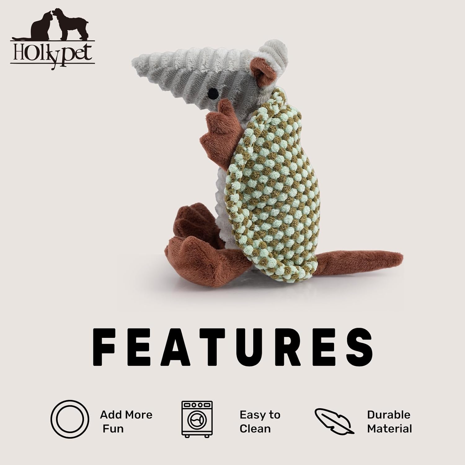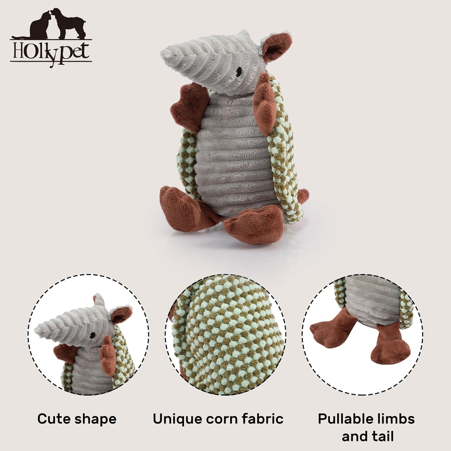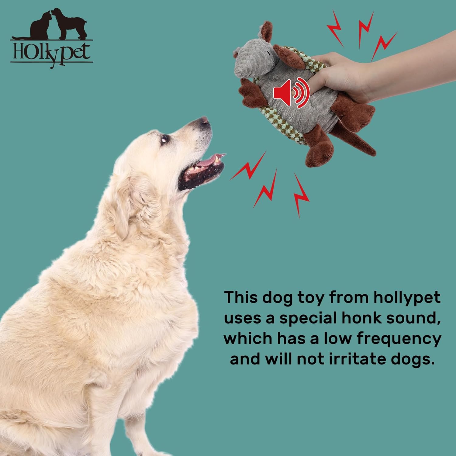 - Unique Sound - Hollypet Armadillo Squeak Toys (except 6 inch) make a sound that's not high pitched, but rather a unique and funny grunt sound that your furry friend will love. Unlike noisy bones, ropes, or other normal stuffed plush dog toys