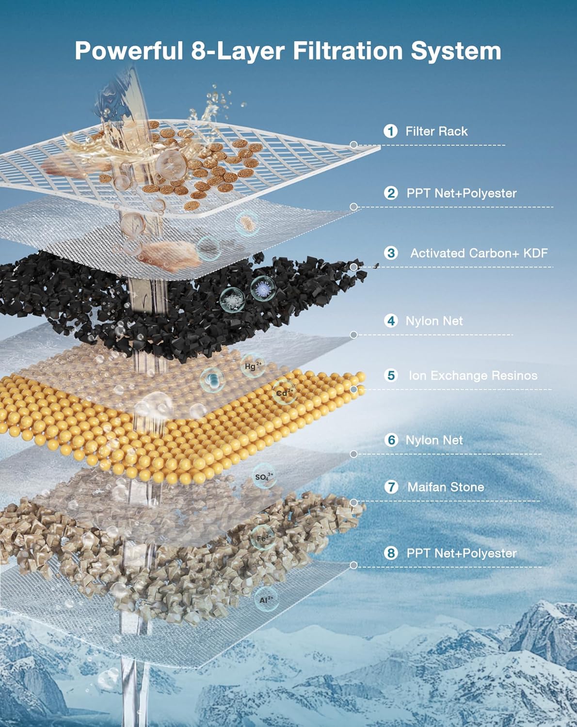 - Material : Activated Carbon, Ion Exchange Resin, KDF, Maifan Stone
