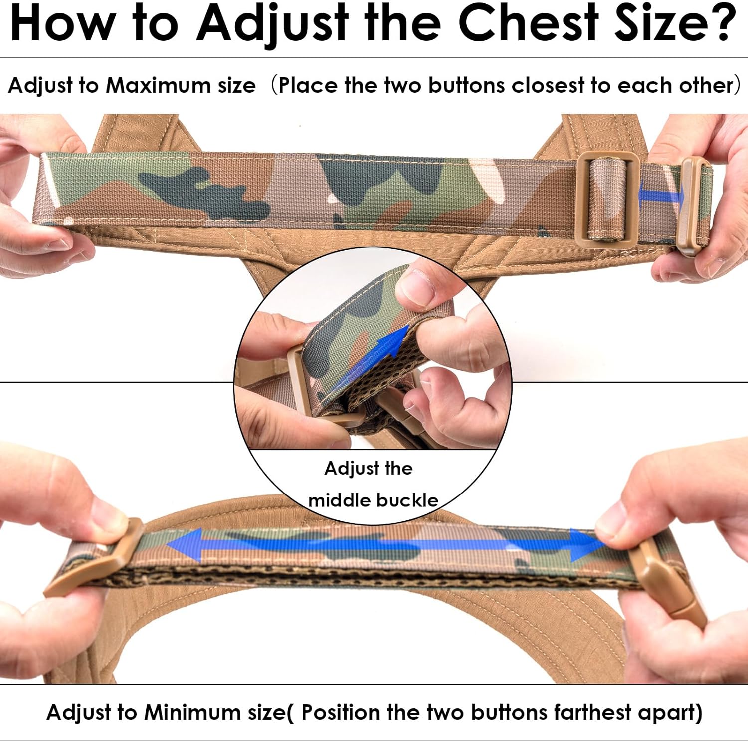 No Pull Dog Harness for Small Medium Large Sized Dogs, Escape Proof Adjustable Dog Harnesses with 2 Patch, Green Camo, XL