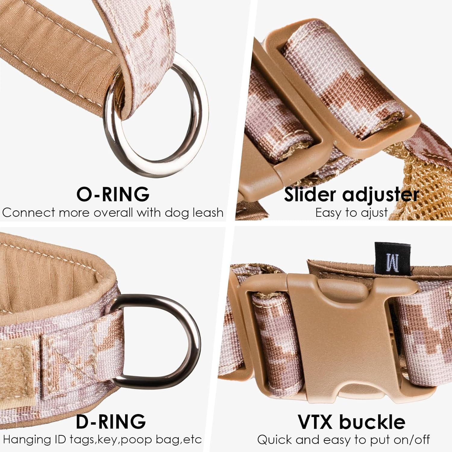 - Easily to Put ON/ OFF-The dog body harness use of VTX load-bearing buckle, simple and quick to use, cold and high temperature resistance, not easily to deform, compact structure, to prevent dogs from escaping.